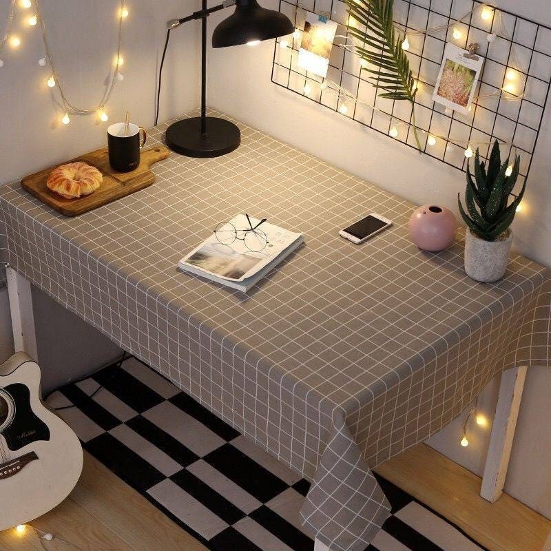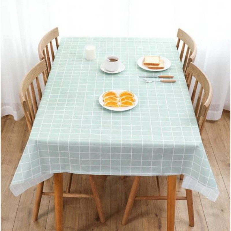 COD ผ้าปูโต๊ะ PEVA ผ้าปูโต๊ะกันน้ำ ทำความสะอาดง่าย กันน้ํา กั กันลื่น ผ้าลายสก็อตลายตาราง