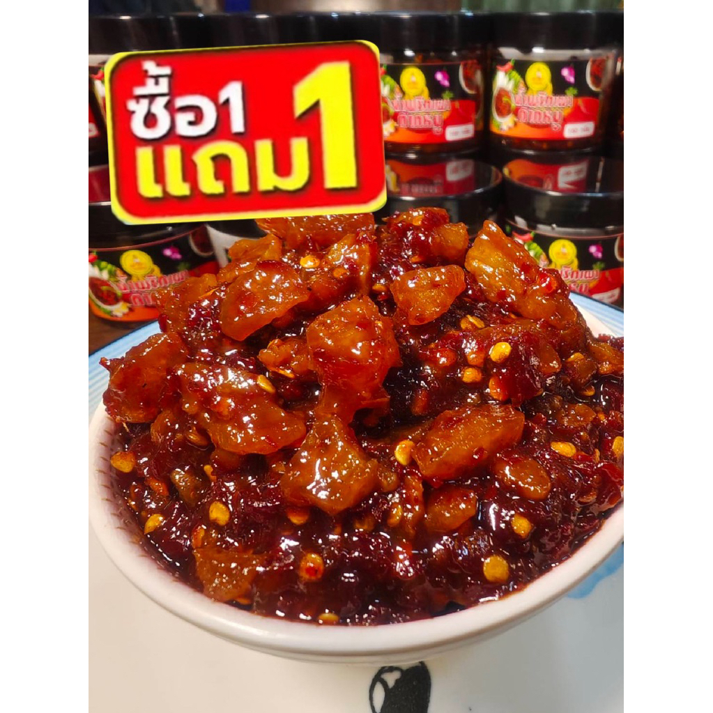 น้ำพริกเผาผัดกากหมูและน้ำพริกเผากุ้งซื้อ1กระปุกแถมฟรี1กระปุก(2กระปุก300กรัม)
