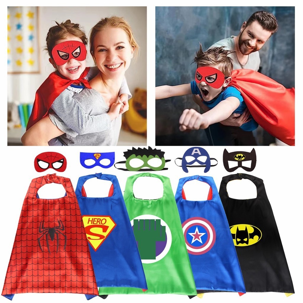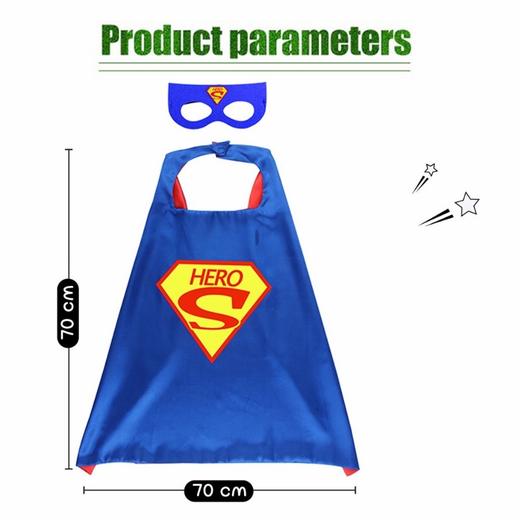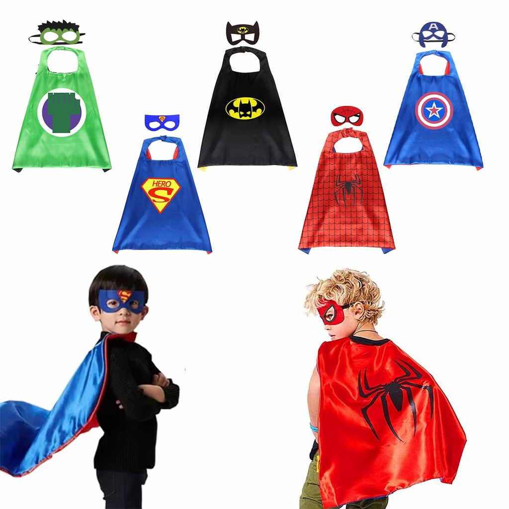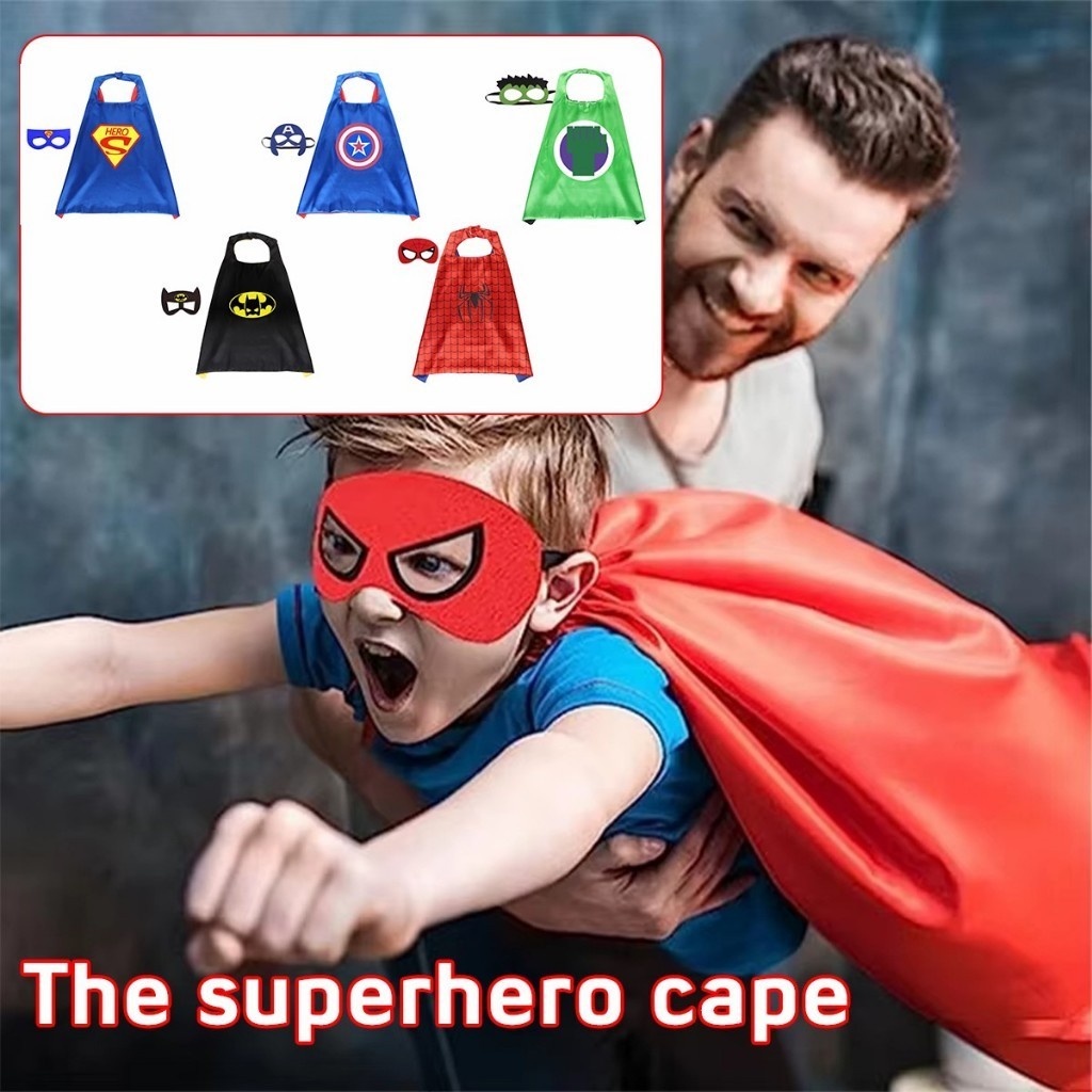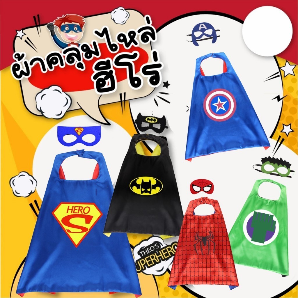 ร้านอยู่กทม.ผ้าคลุม superhero costume ชุดคลุมฮีโร่ 70*70ซม.แถมหน้ากาก ผ้าคลุมไหล่ สำหรับเด็ก