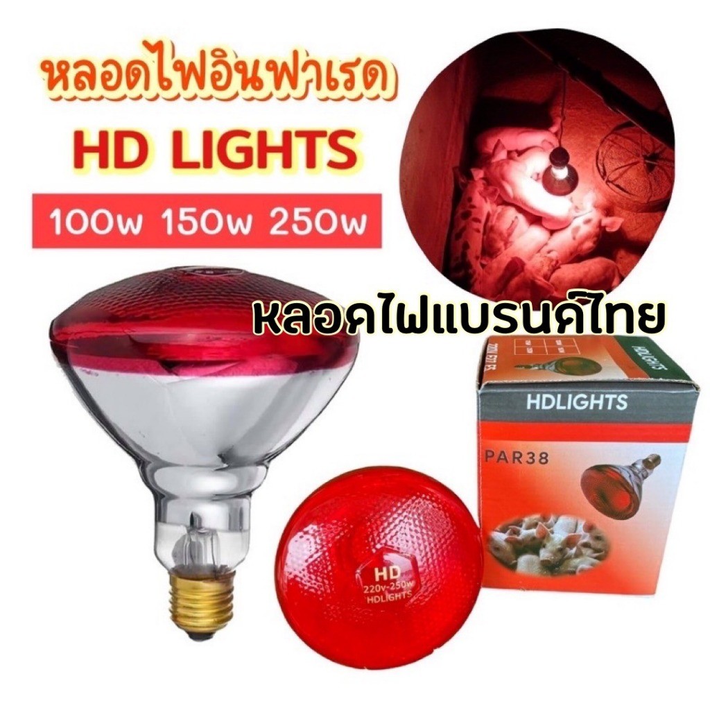 หลอดไฟกกหมู หลอดดไฟความร้อนHD LIGHTS หลอดอินฟาเรดแท้ หลอดไฟกกลูกไก่ ไฟกกหม แบบหนาพิเศษ ไฟกกสัตว์
