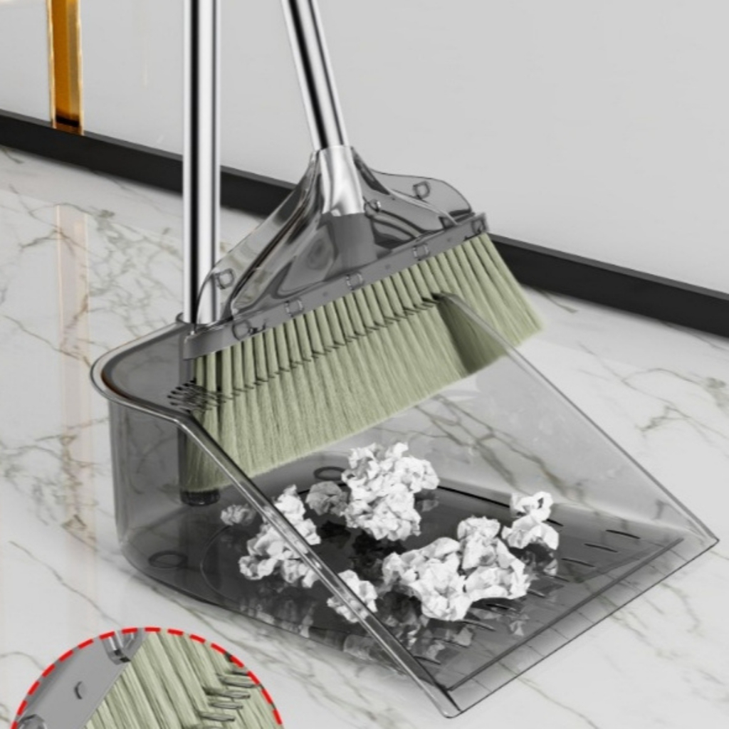 ชุดไม้กวาดบ้าน ที่โกยผง สีใส ชุดไม้กวาด ไม้กวาด ขนแปรงนิ่ม สเตนเลส อเนกประสงค์ สินค้าพร้อมส่งในไทย ทำความสะอาด