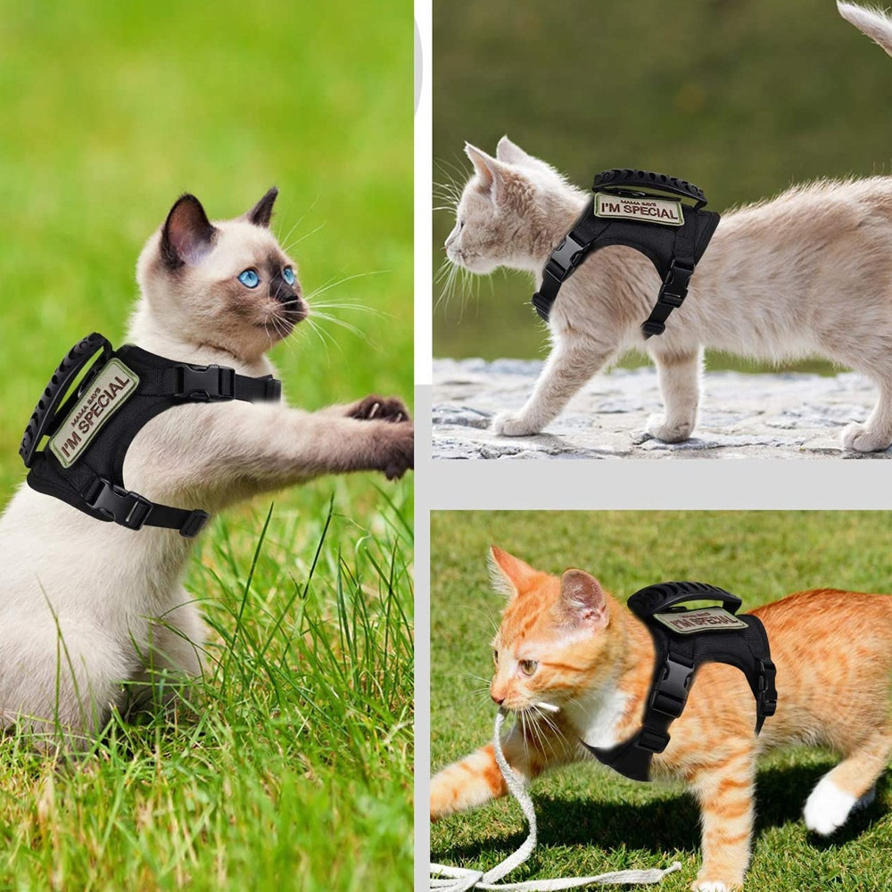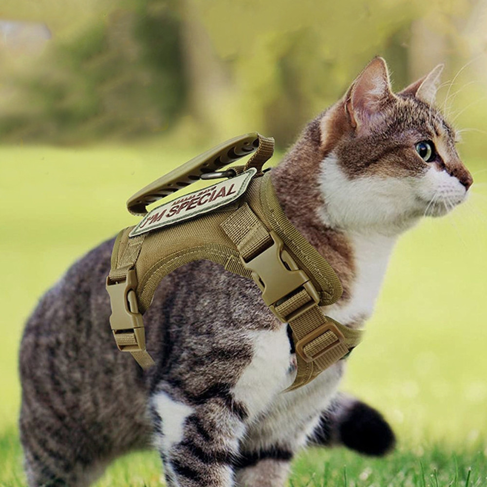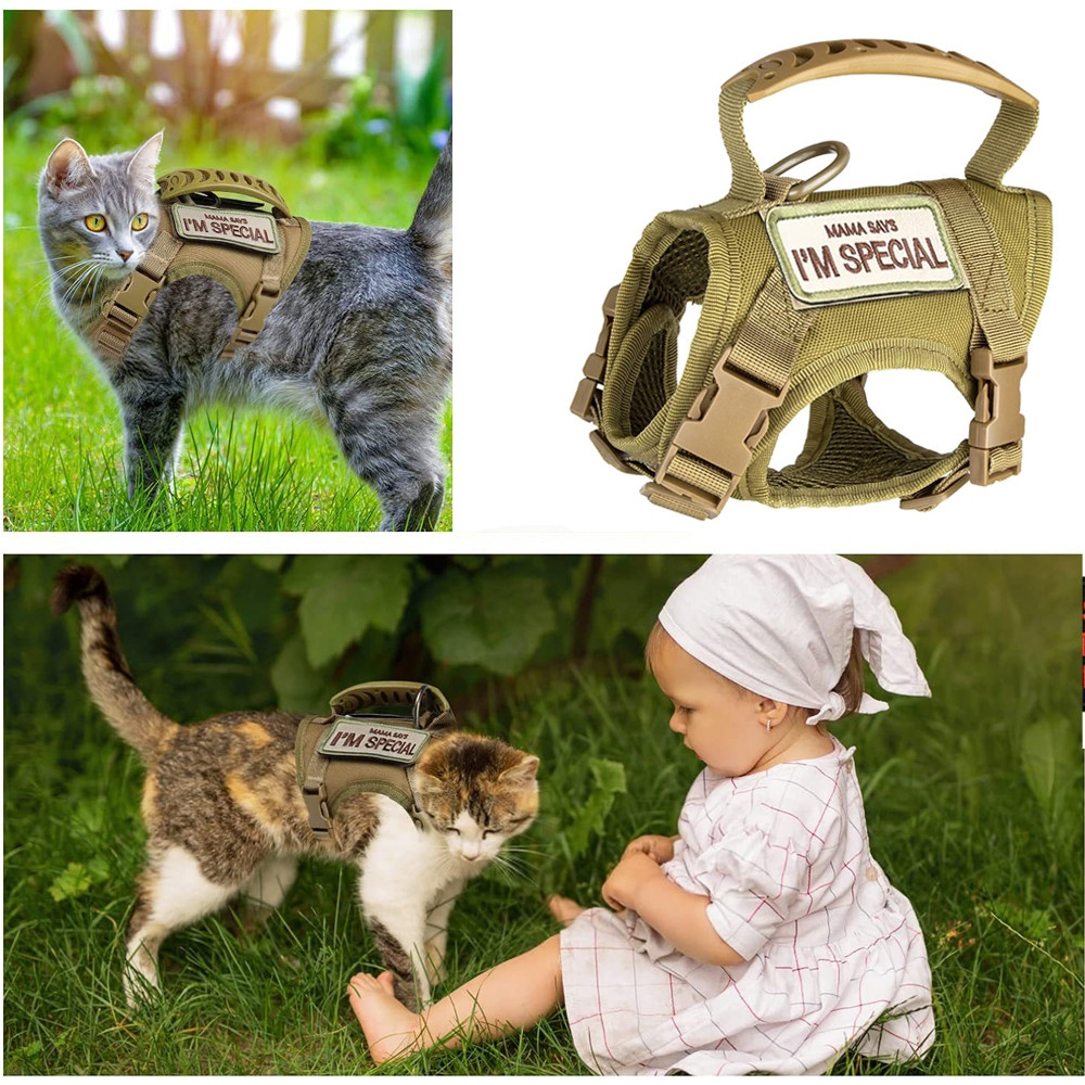 สายรัดแมวยุทธวิธีทนทานพร้อมที่จับปรับทหารลูกสุนัขเสื้อกั๊กสายรัดสัตว์เลี้ยงพร้อมแพทช์ตาข่ายเบาะสายรัดแมว
