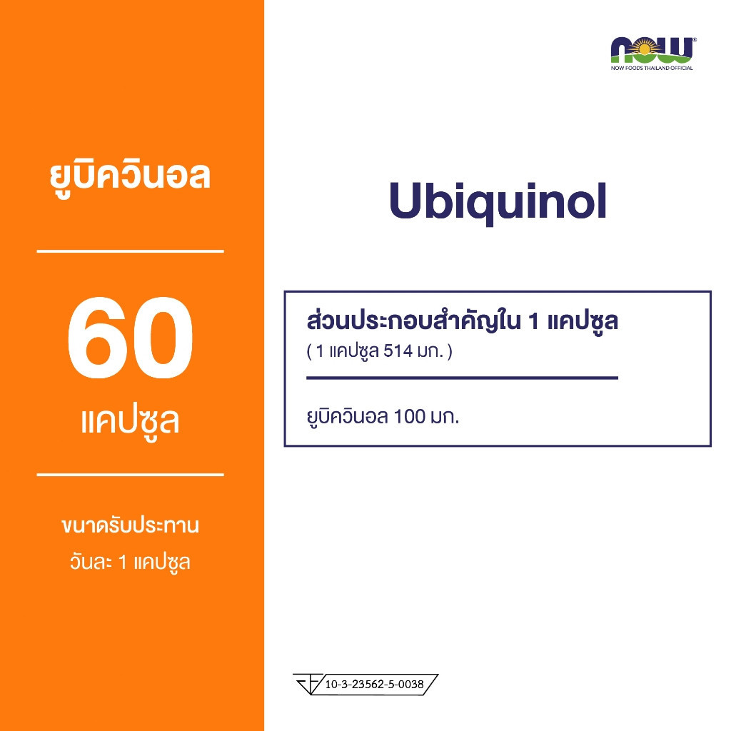 EXP:08/27 Now Foods Ubiquinol 100 mg. นาวฟู้ดส์ โคคิวเทน/ยูบิควินอล 60 Softgels/Capsules วิตามิน พร้อมส่งรุ่นที่นำเข้า