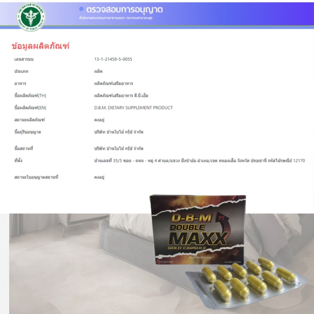 รายละเอียดสินค้า D-B-M ผลิตภัณฑ์เสริมอาหาร Double Maxx อาหารเสริมบำรุง ฟื้นฟูร่างกาย (6กล่อง =60แคปซูล) ไม่ระบุสินค้าหน้ากล่องหน้าสินค้า