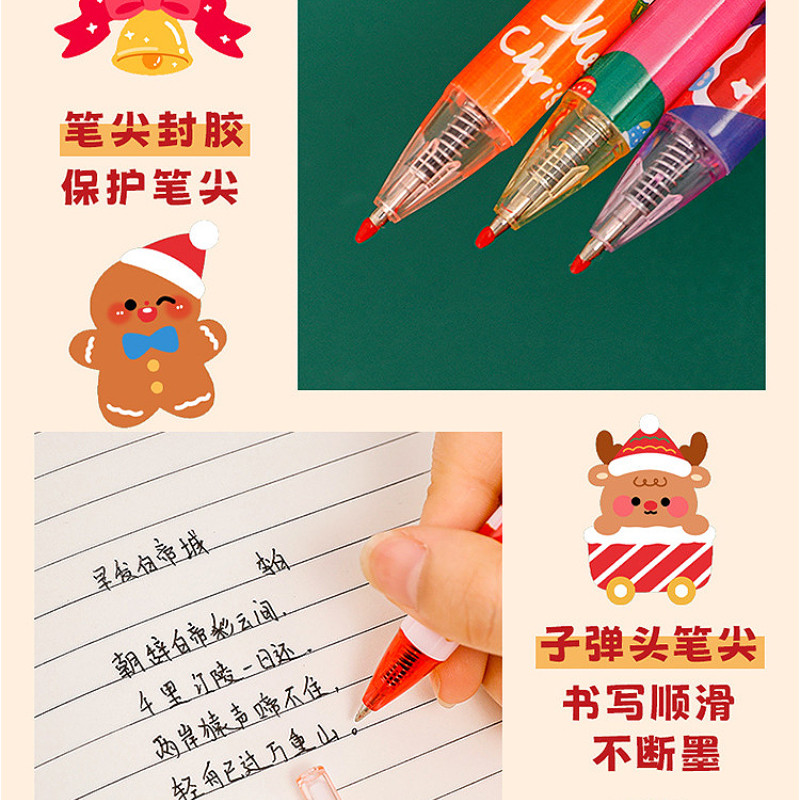 คริสต์มาสคลิกเจลปากกาคริสต์มาสชุดเจลปากกาเด็กเครื่องเขียนของขวัญการ์ตูนปากกาลายเซ็นทดสอบเขียนปากกาซานตาคลอสกวางปากกา