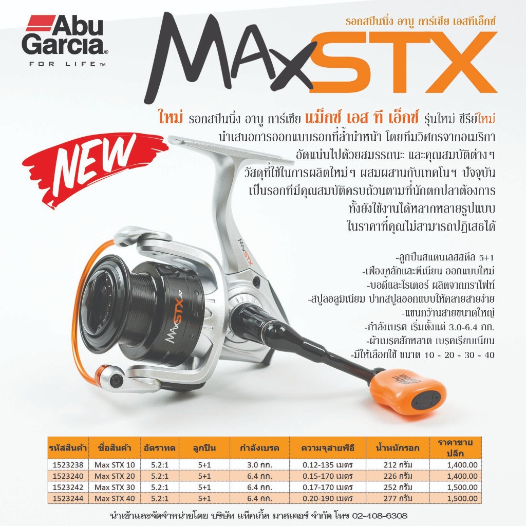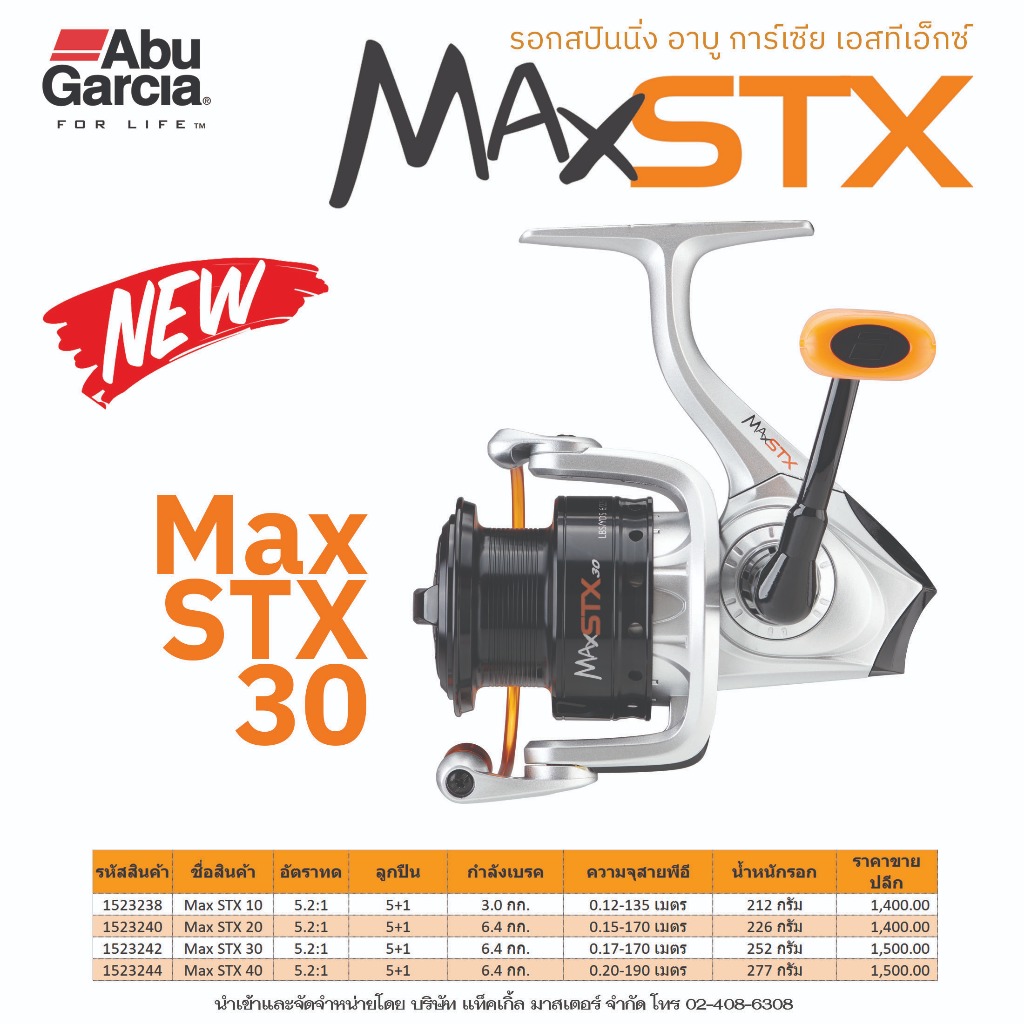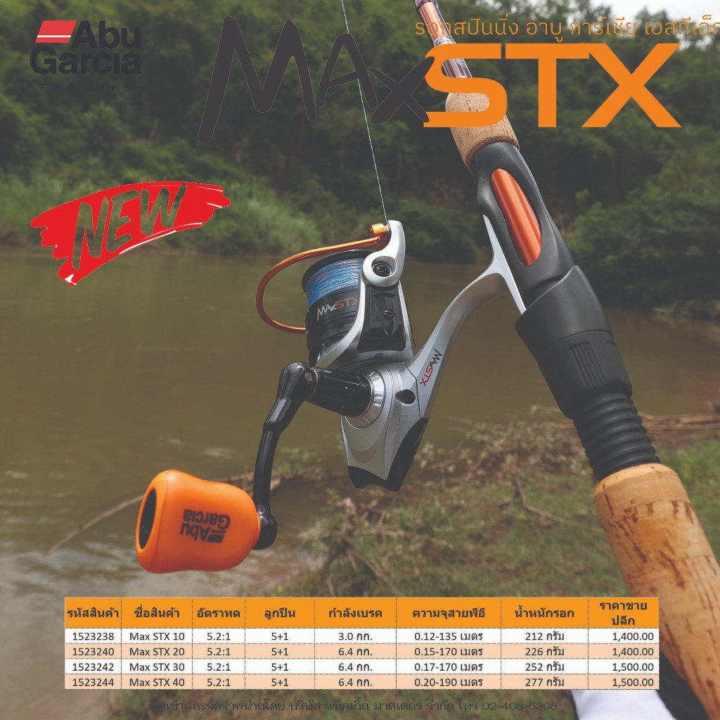 ใหม่ รอกสปินนิ่ง อาบู การ์เซีย แม็กซ์ เอส ที เอ็กซ์ รุ่นใหม่ ซีรีย์ใหม่ นำเสนอการออกแบบรอกที่ล้ำนำหน้า โดยทีมวิศกรจากอเมริกาอัดแน่นไปด้วยสมรรถนะ และคุณสมบัติต่างๆ วัสดุที่ใช้ในการผลิตใหม่ๆ ผสมผสานกับเทคโนฯ ปัจจุบัน