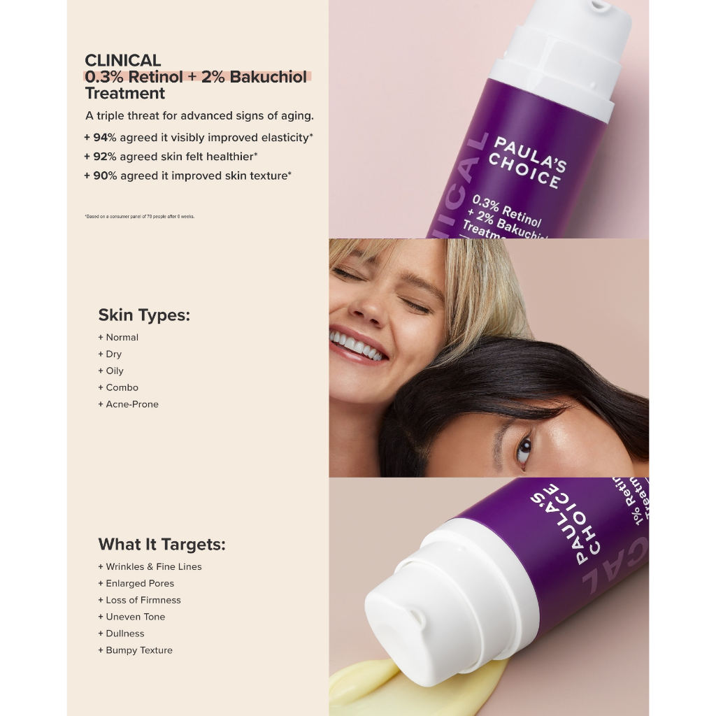 [Paulas Choice] Clinical 0.3% Retinol + 2% Bakuchiol Treatment Serum 30ml Anti-Aging Serum for Deep Wrinkles & Fine Lines