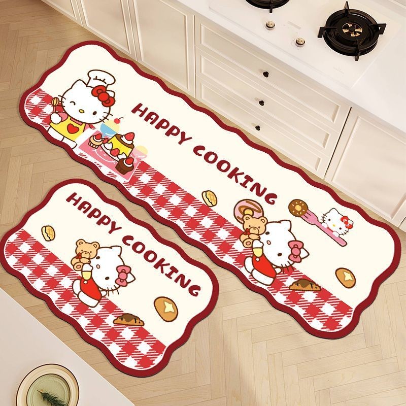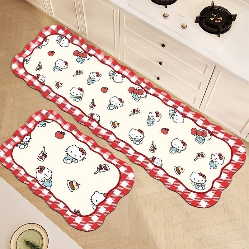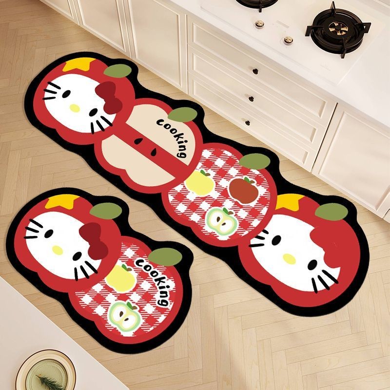 HelloKitty ดูดซับ Anti-Slip Quick-Drying Diatom Mud พรมปูพื้น Little Green Apple Little Red Apple พรมปูพื้นในครัวเรือน