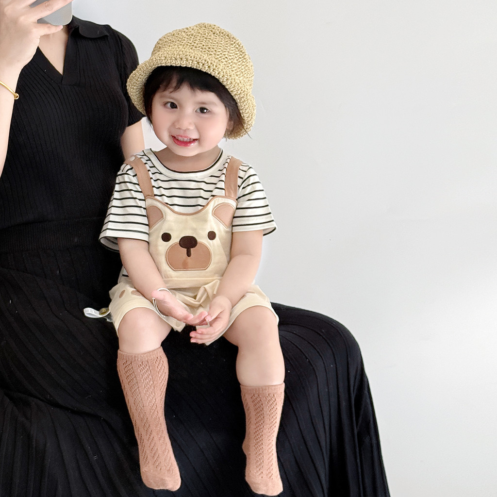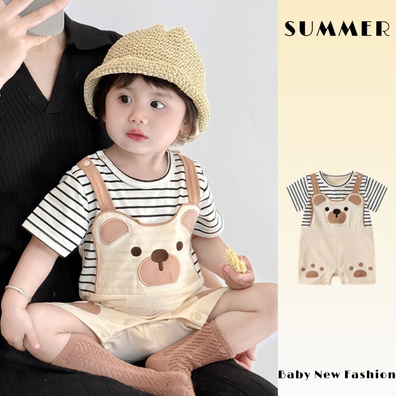 ฤดูร้อนเด็กใหม่เสื้อผ้าเด็กชายและเด็กหญิงบอดี้สูทแขนสั้น0-24เดือนเย็นและระบายอากาศน่ารักหมี ชุดรอมเปอร์ สไตล์เกาหลี
