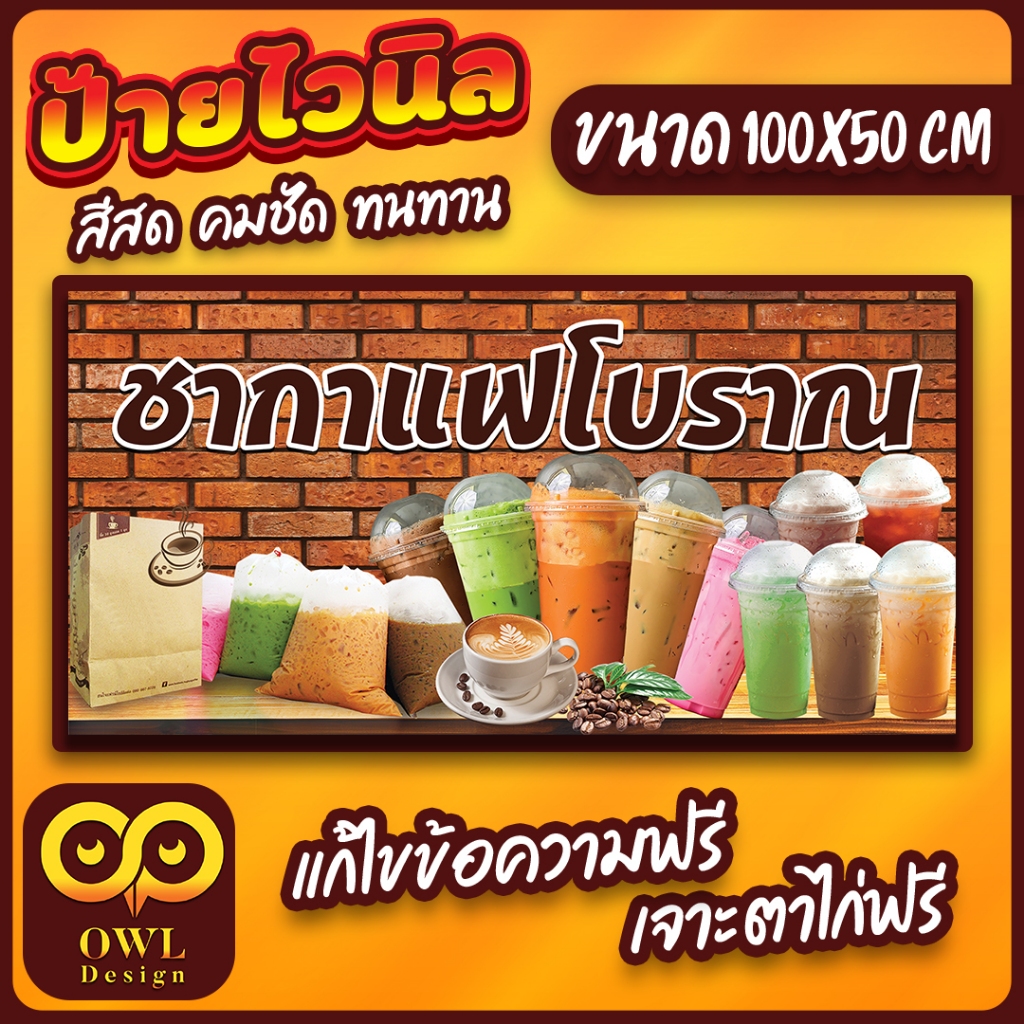OWL-103 ป้ายไวนิล ชากาแฟ ป้ายชากาแฟโบราณ OWLDesign
