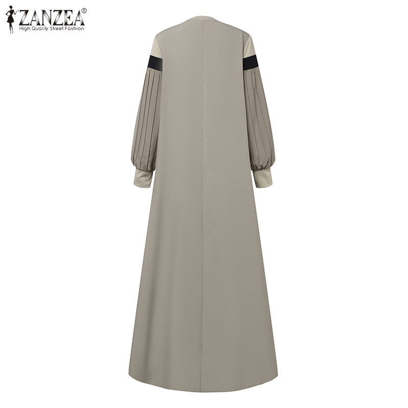 Zanzea ผู้หญิงมุสลิมสีปิดกั้นลายแขนโคมไฟจีบชุดประกบชาย