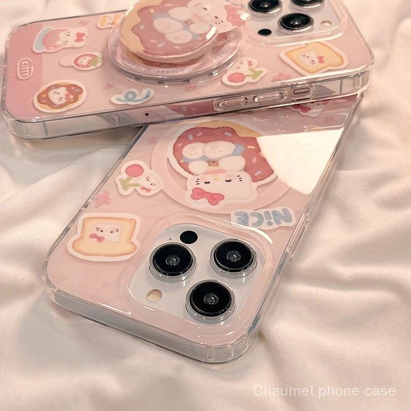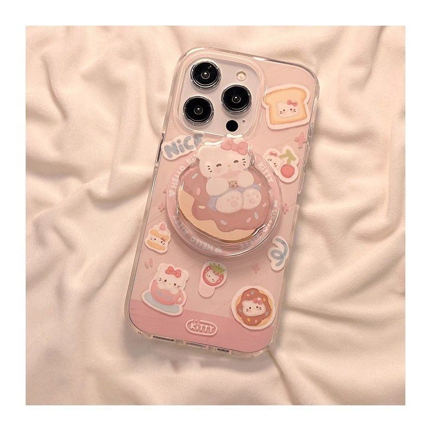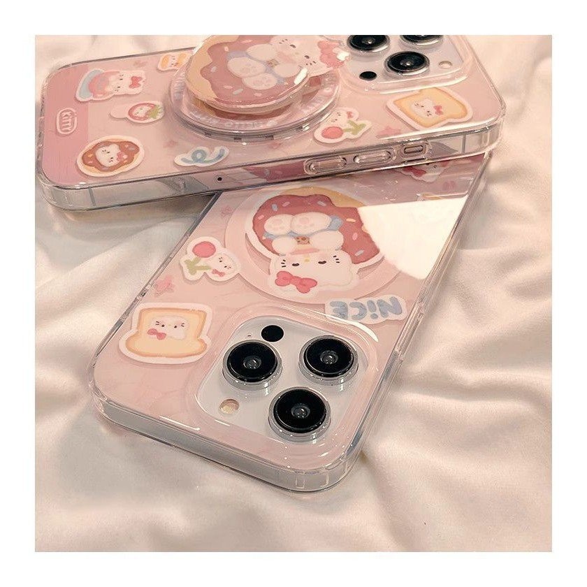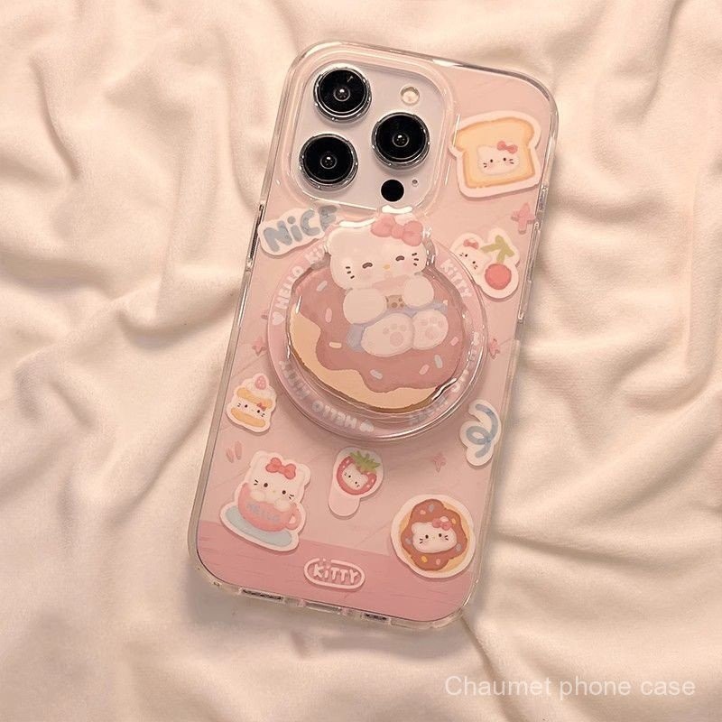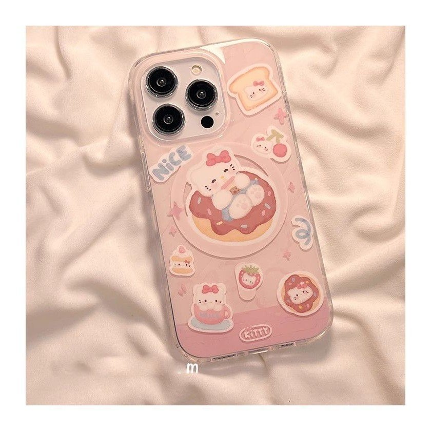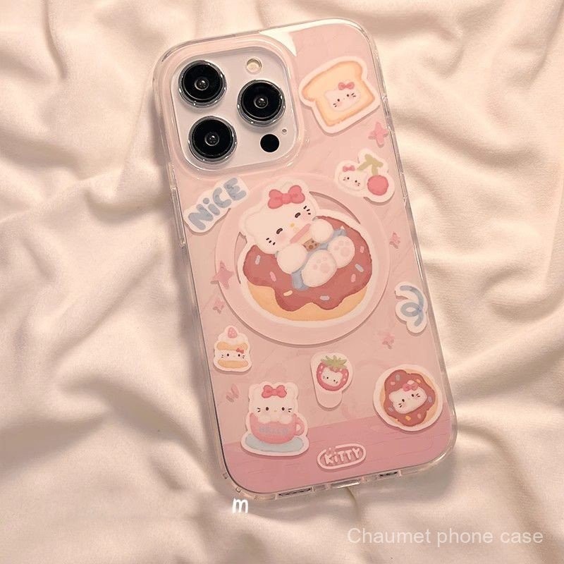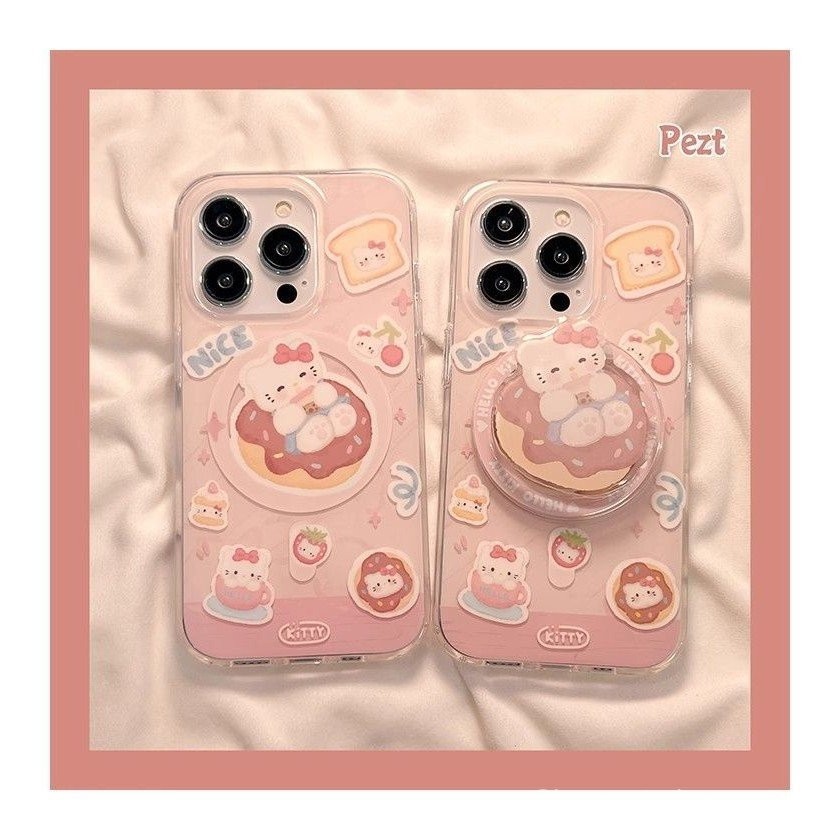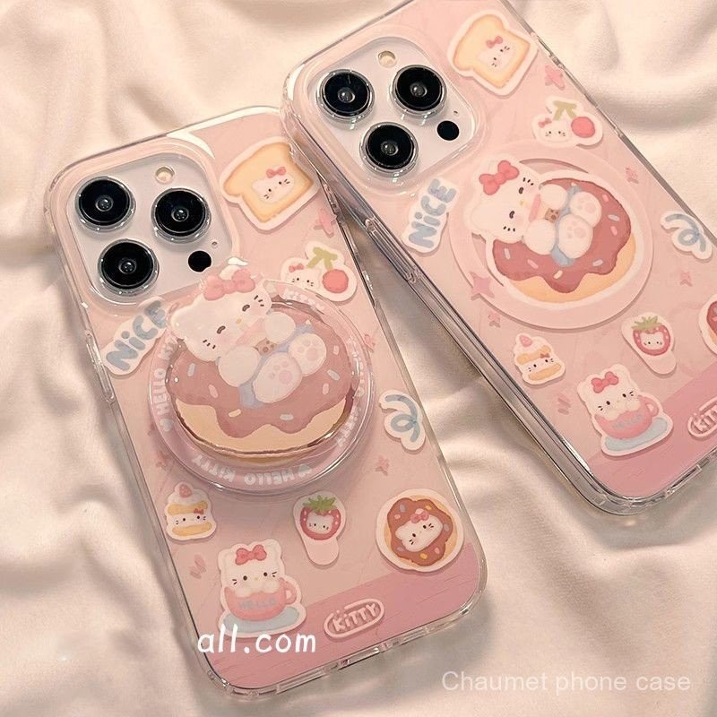 แมว KT น่ารักพร้อมขาตั้งแม่เหล็ก รองรับ iPhone 15 Pro Max เคสโทรศัพท์แม่เหล็ก รูใหญ่ 13/กันกระแทก 14 Pro/กันตก 12/เคสนุ่ม 11 พรีเมียม 8P/X การ์ตูน 1CZX
