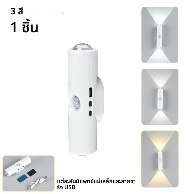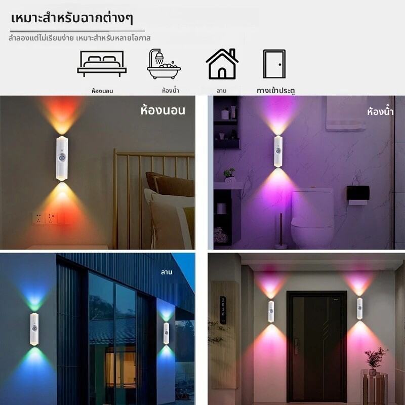 ไฟกลางคืน LED ชาร์จได้ พร้อมเซ็นเซอร์ตรวจจับการเคลื่อนไหว โคมไฟติดผนัง RGB ไล่สี ปรับความสว่างได้ พร้อมฐานแม่เหล็ก