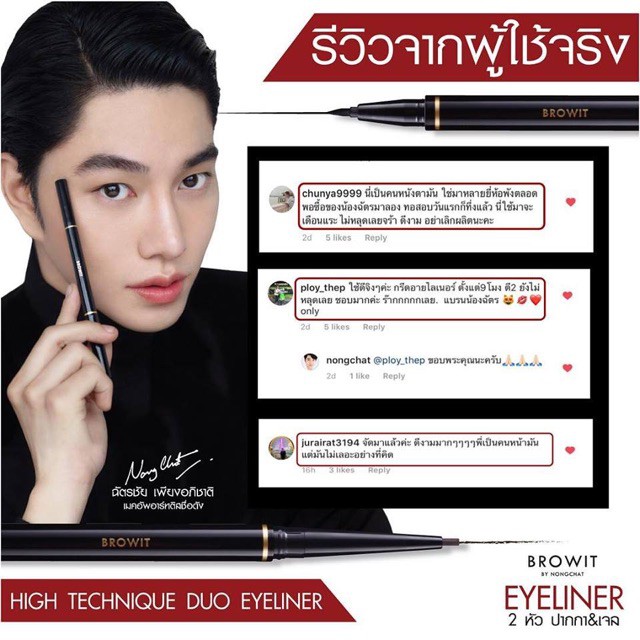 อายไลน์เนอร์ น้องฉัตร(กล่องแดง/ดำ) High Technique Duo Eyeliner Browit by Nongchat กรีดตาคม ดูโอ้อายไลน์เนอร์ สวยธรรมชาติ