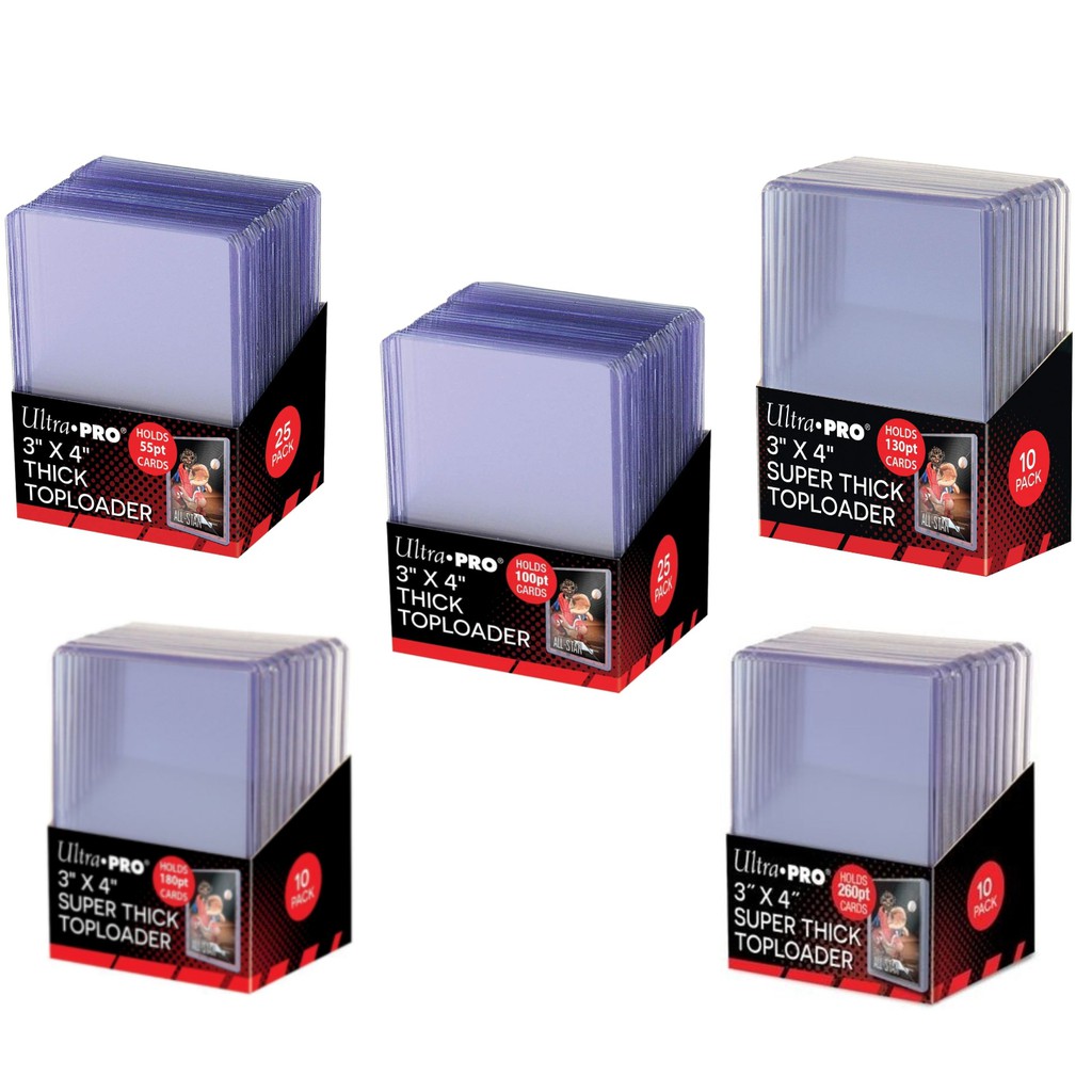 Card TopLoader 55pt 75pt 100pt 130pt 180และ260pt ยี่ห้อ Ultra Pro สำหรับใส่การ์ด ที่มีความหนากว่าปกติ เช่น ชิ้นส่วนเสื้อ ชิ้นส่วนลูกบาส เป็นต้น **สินค้าอาจมีรอยขนแมวบ้าง ซึ่งเป็นมาจากโรงงานและทางร้านก็ไม่สามารถเลือกสินค้าได้ ขอลูกค้าที่รับปัญหาที่อาจเก