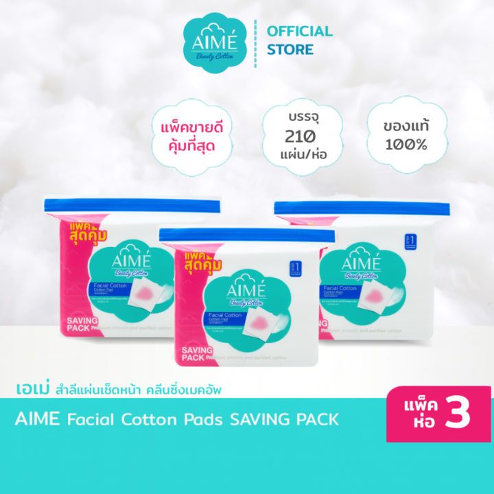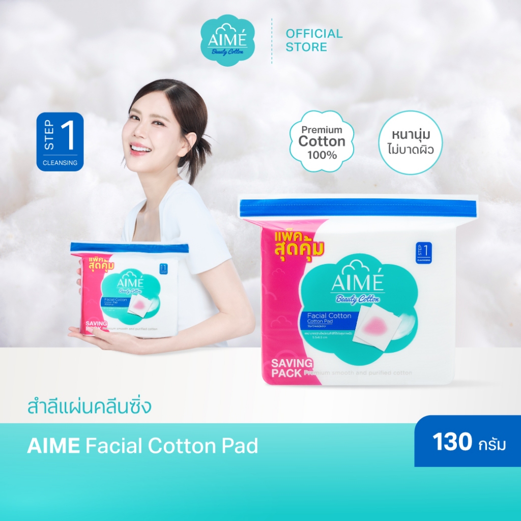 AIME สำลีแผ่นคลีนซิ่ง 130g SAVING PACK สำลีไม่เป็นขุย นุ่มแน่นคุ้มค่าเหมาะกับผิวแพ้ง่าย (x 3)