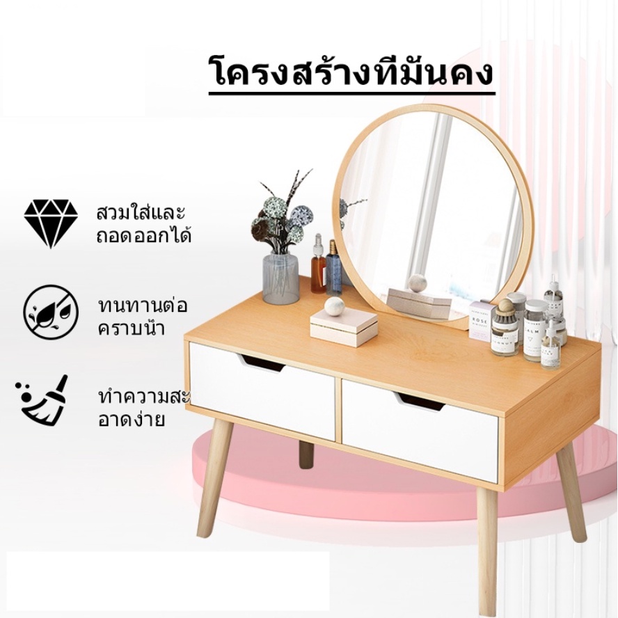 HomeproPlus โต๊ะเครื่องแป้งสไตล์มินิมอล โต๊ะเเต่งหน้า โต๊ะทรงเตี้ยสำหรับนั่งพื้น สามรถถอดกระจกออกได้