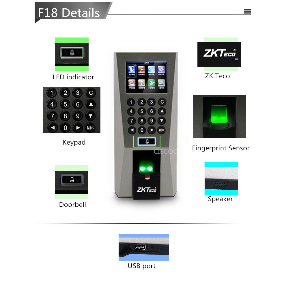 เครื่องสแกนลายนิ้วมือควบคุมประตู ZK รุ่น ZKTECO F18 (ต่อเข้ากับกลอนไฟฟ้า)