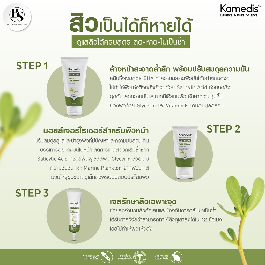 [ B ] ซื้อ1แถม1 กดลงตะกร้า 2 ชิ้น Kamedis AC-Clear Face Cream 50ml มอยเจอไรเซอร์ครีมสำหรับผิวมัน เป็นสิวง่าย