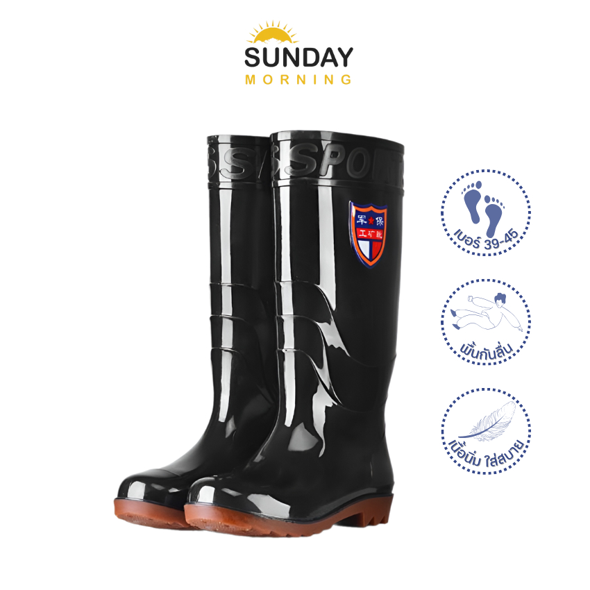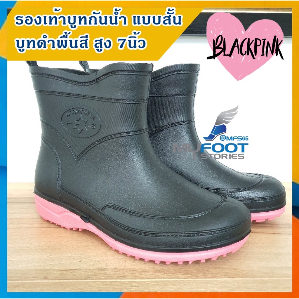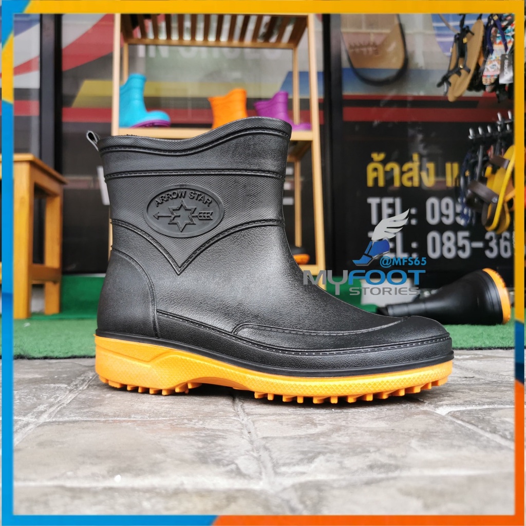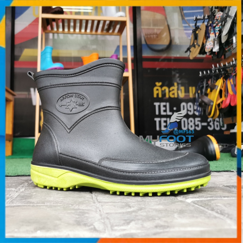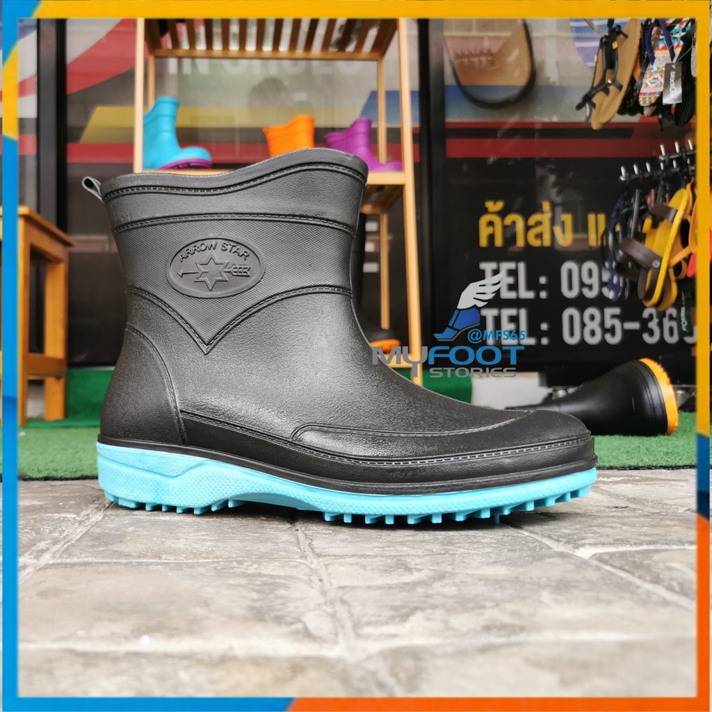 รองเท้าบูท รองเท้าบูทกันน้ำ Arrow Star รุ่น A555 รองเท้าบูทยาง รองเท้าบูทข้อสั้น ดำพื้นสี สูง 7 นิ้ว