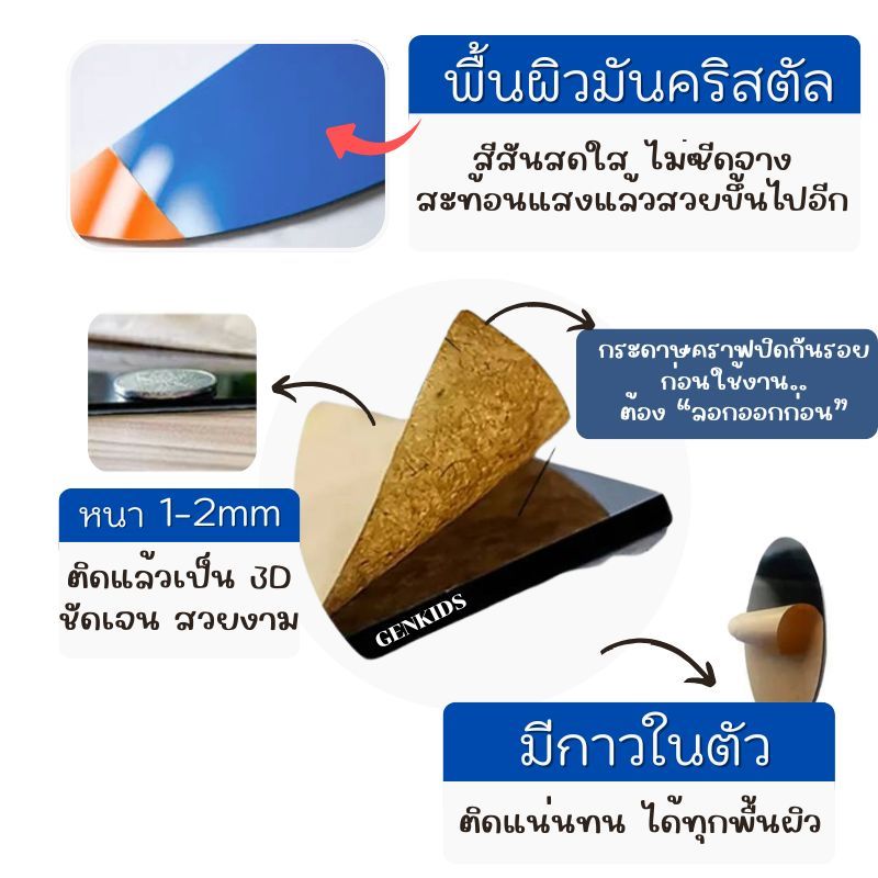 ➡️ เป็นอะคริลิคติดผนัง มีความเงา และนูนออกมาประมาน 2 mm ติดแล้วสวย ดูดีเว่อ ( ไม่ใช่สติ๊กเกอร์แผ่นบางๆ )