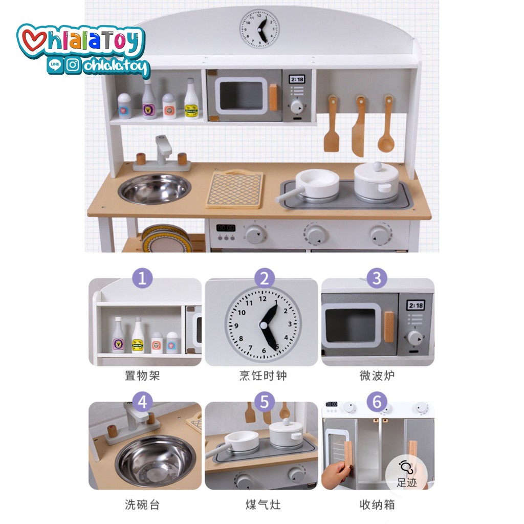 1. ครัวไม้ , ช่องเครื่องล้างจาน , เตาแก๊ส 2 หัว , นาฬิกา , ชั้นวางถ้วยชาม , ช่องเก็บของด้านล่าง, ไมโครเวฟ