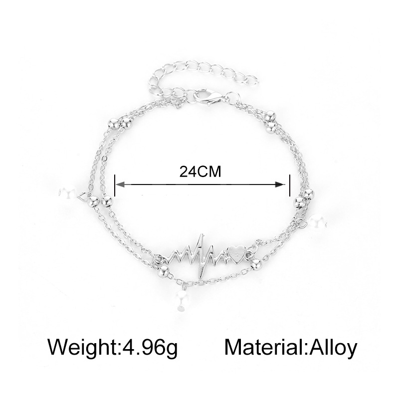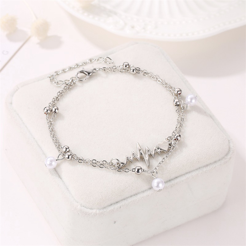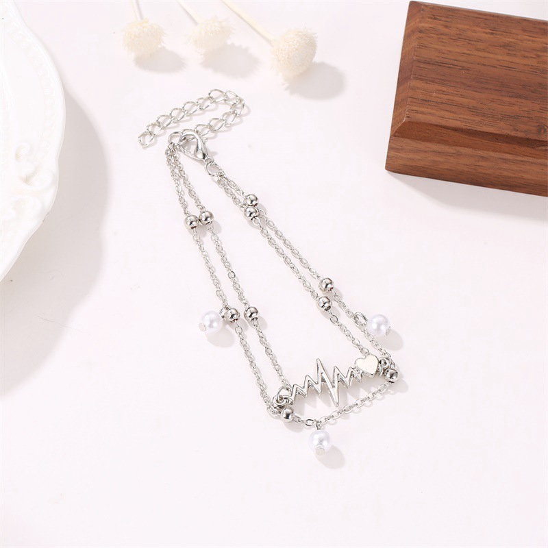 กำไลข้อเท้า จี้รูปคลื่นไฟฟ้า แต่งไข่มุก สำหรับสตรี