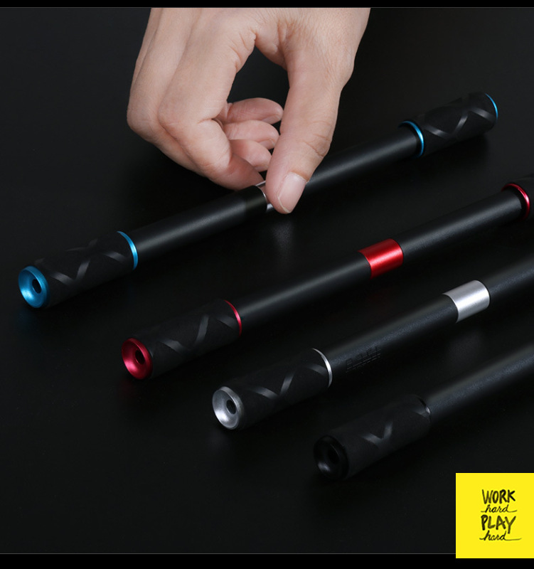 ปากกาควง หัวเหล็ก ของแท้ แถมกระบอกใส่ สีดำคาดแถบสีสุดเท่ ควงดี ถ่วงดี กันลื่น