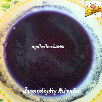 ผลิตจาดดอกอัญชัน 100 % เป็นผงละเอียด สีม่วง ละลายน้ำได้สีม่วง