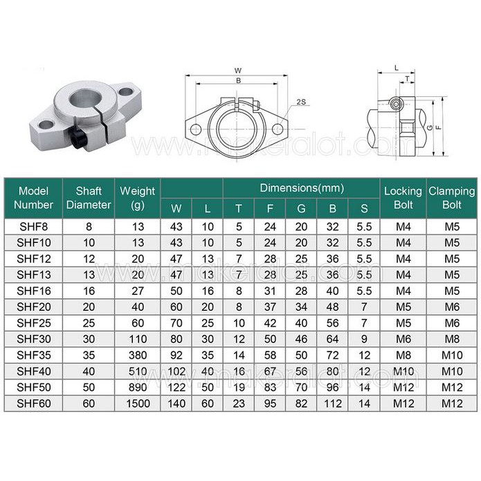 SHF10 รูเพลา 10 mm.