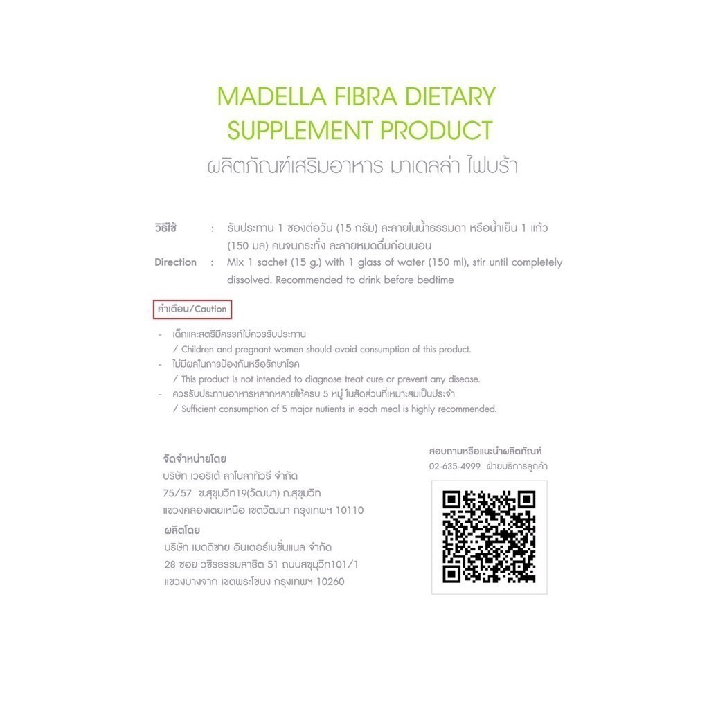 ผลิตภัณฑ์เสริมอาหาร มาเดลล่า ไฟบร้า