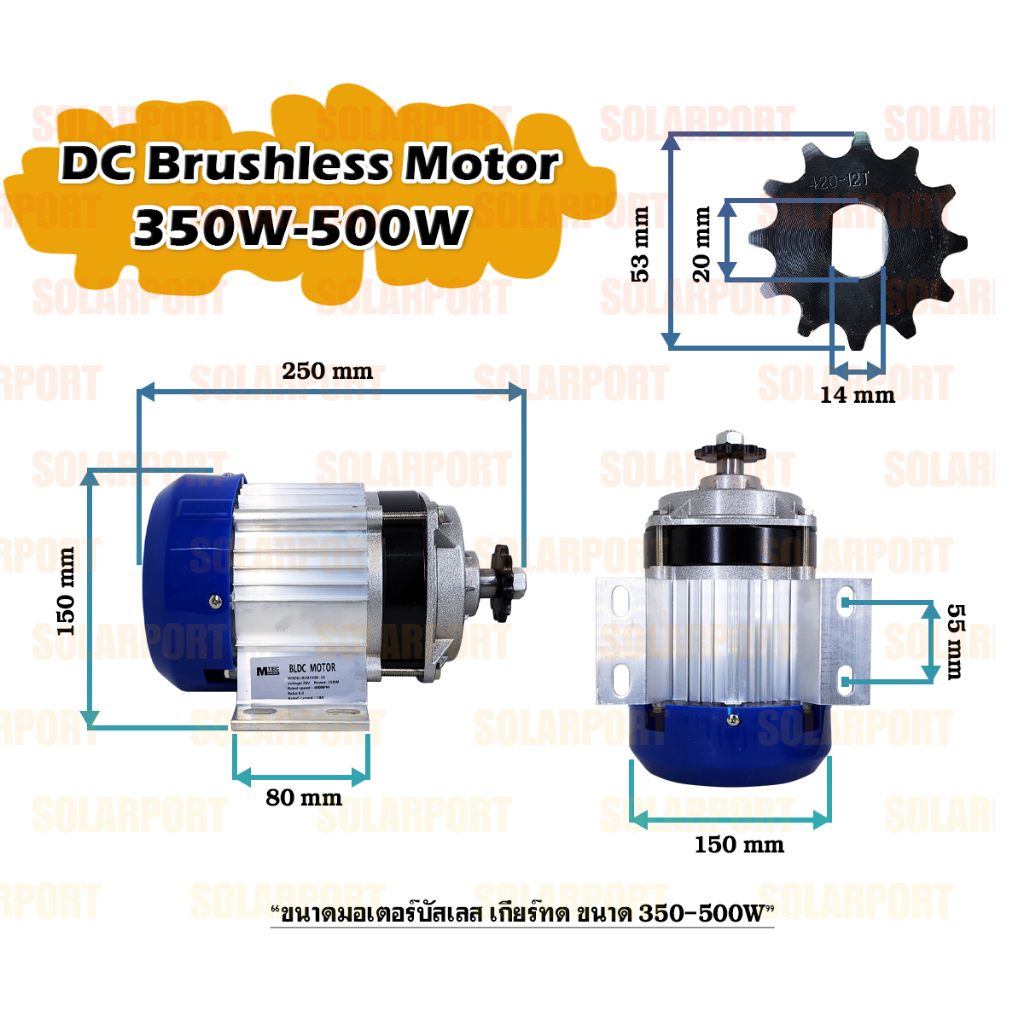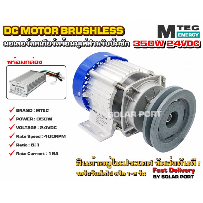 มอเตอร์บัสเลสติดมูเล่ DC24V 350W (ทดเกียร์) (รุ่นทำงานได้เมื่อความเข้มแสงต่ำ) พร้อมกล่องคอนโทรล สำหรับปั๊มชัก