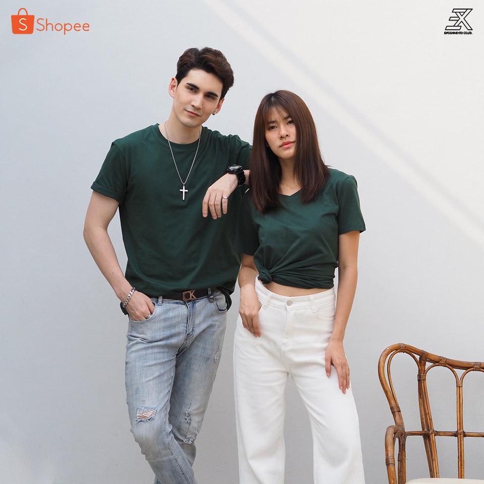 Expogarment เสื้อยืดสีเขียวหัวเป็ด คอกลม คอวี คอตตอน100% ไม่มีตะเข็บข้าง ไซส์S-6XL หดเกิน3%ยินดีคืนเงิน