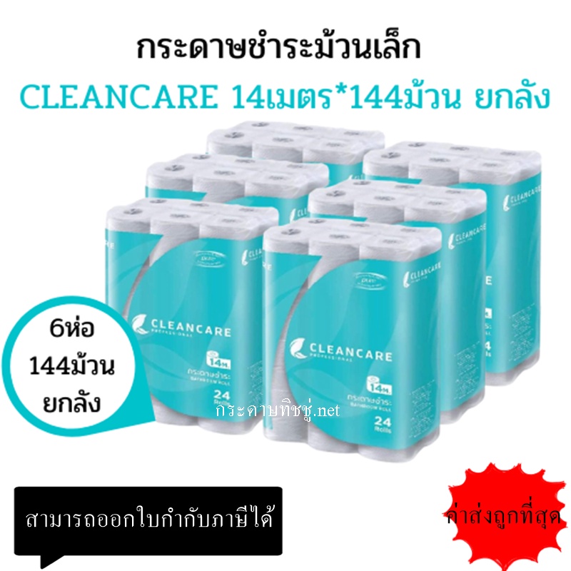(ยกลัง) กระดาษชำระม้วนเล็ก คลีนแคร์-Cleancare เยื่อบริสุทธิ์ 100% (144ม้วน/ลัง)
