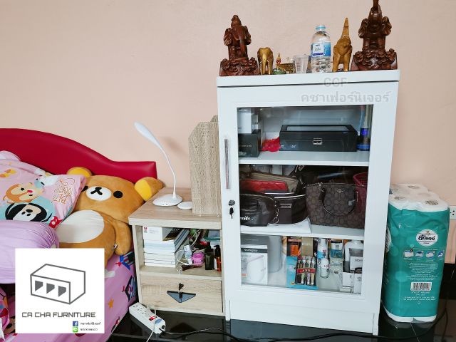 ตู้โชว์ กระเป๋า อเนกประสงค์ - โชว์กระเป๋า - โชว์ของรัก ของสะสม - วางข้างหัวเตียงก็งาม - มีบานป้องกันฝุ่นได้ ขนาด : 60*40*90 ซม. วัสดุ : ไม้อัดปาติเกิ้ลเคลือบเมลามีน