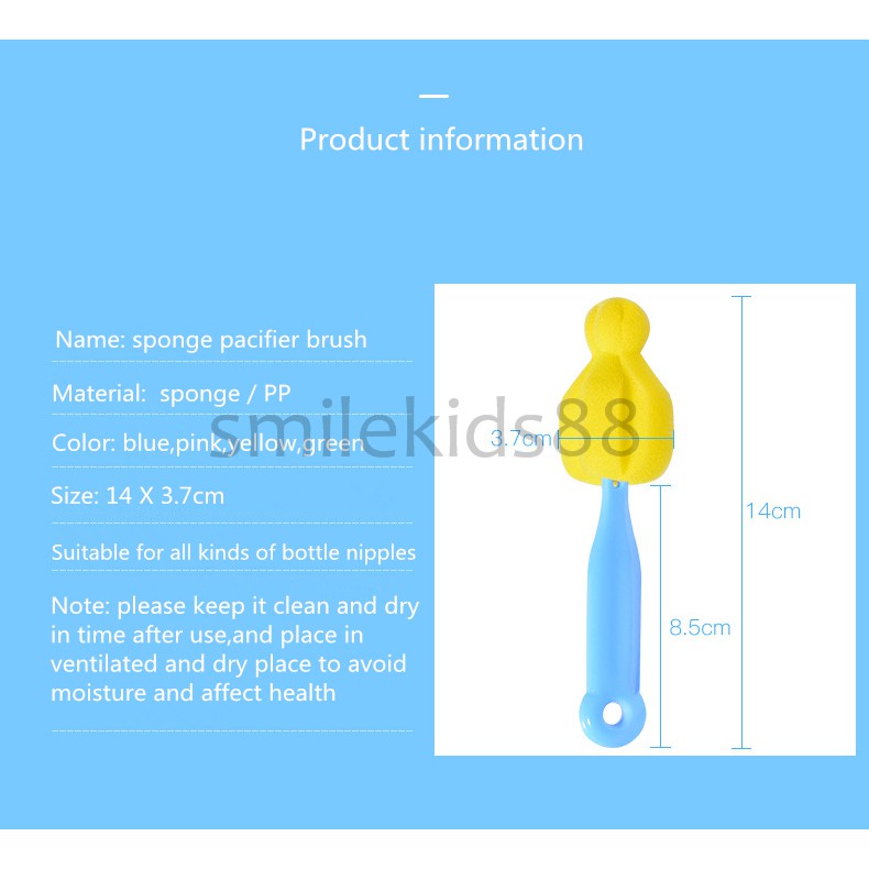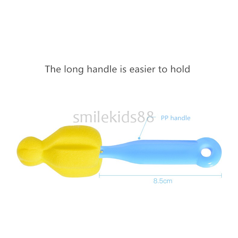 ฟองน้ำออกแบบพิเศษ สำหรับทำความสะอาดคราบสกปรกในจุกนมได้อย่างหมดเกลี้ยง สามารถเข้าถึงมุมที่เข้าถึงยาก ฟองน้ำถอดออกได้ง่ายสำหรับการทำความสะอาด ด้ามจับโพลีโพรพีลีน (PP) ที่เป็นมิตรกั
