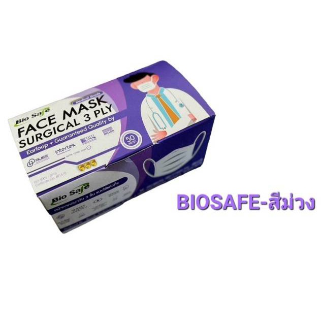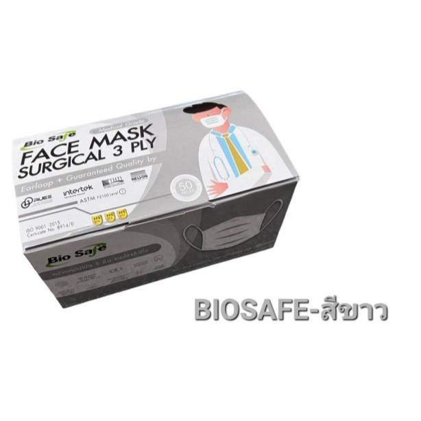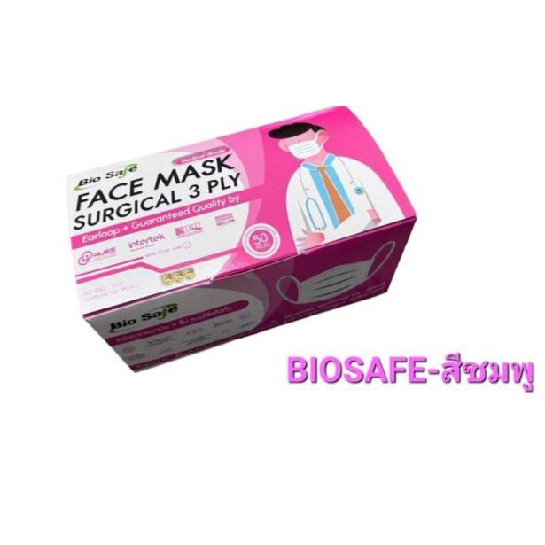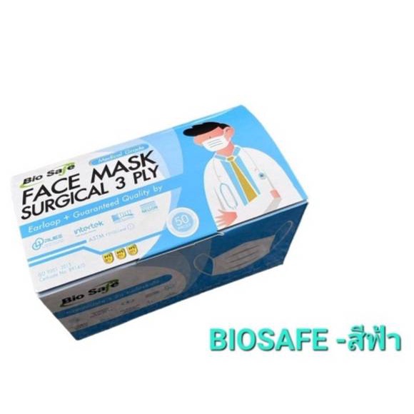 ?Biosafe?หน้ากากอนามัย 3 ชั้น สีเขียว กล่อง 50 ชิ้น สีเขียว