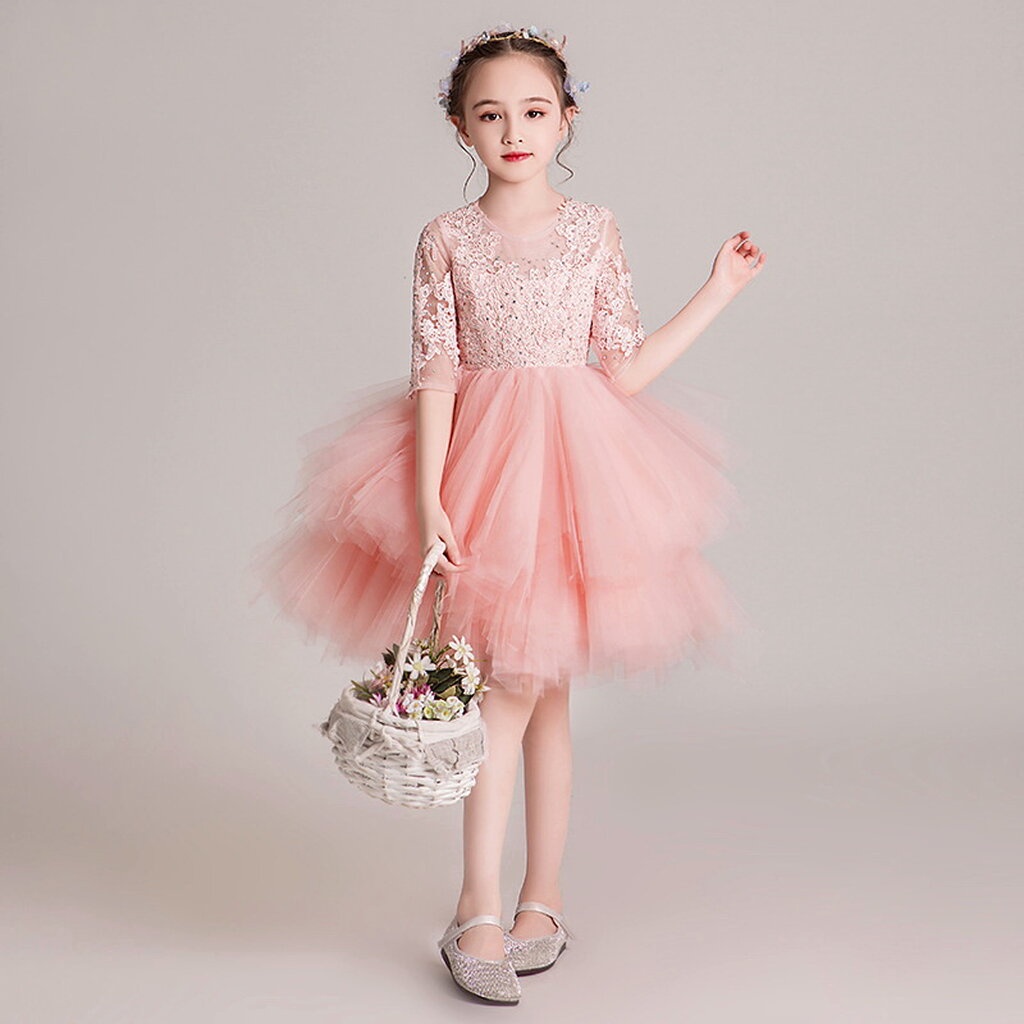 Gd3594- พร้อมส่งจากไทย ชุดราตรีเด็กสีชมพู ชุดออกงานเด็กหญิง มีทรงสั้น ทรงยาว แบบแขนยาว และไม่มีแขน พองฟู สุดสวยหรู