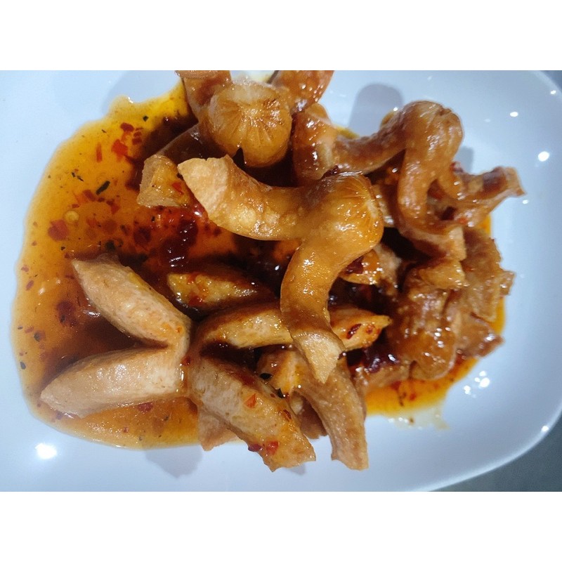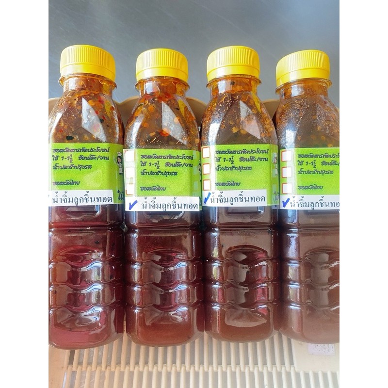 น้ำจิ้มลูกชิ้นทอด 3 รสกลมกล่อม เปรี้ยว หวาน เผ็ด ใช้พริกสด พริกแห้ง น้ำตาลปี๊บอย่างดี ข้นเหนียวจากการเคี่ยวปรุงรสจนลงตัว ไม่มีสารเคมี สารกันบูด ควรเก็บไว้ในตู้เย็นเพื่อยืดอายุไว้ได้นานๆ ราคาขวดละ 40 บาท น้ำหนัก 280 กรัม