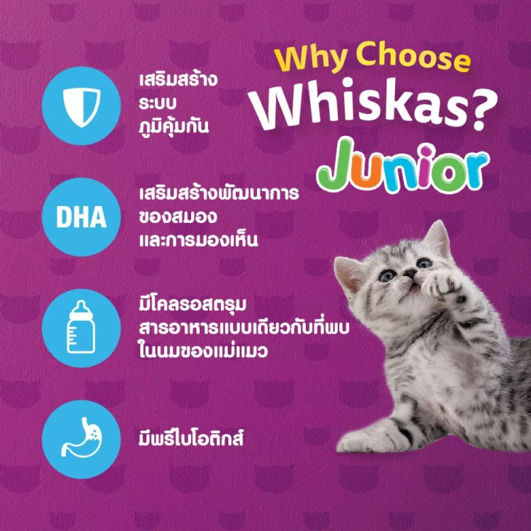 Whiskas อาหารแมว วิสกัส จูเนียร์ ลูกแมว ปลาทู ปลาทะเล บำรุงขน เสริมภูมิ ทานง่าย ขนาด 2.7 kg