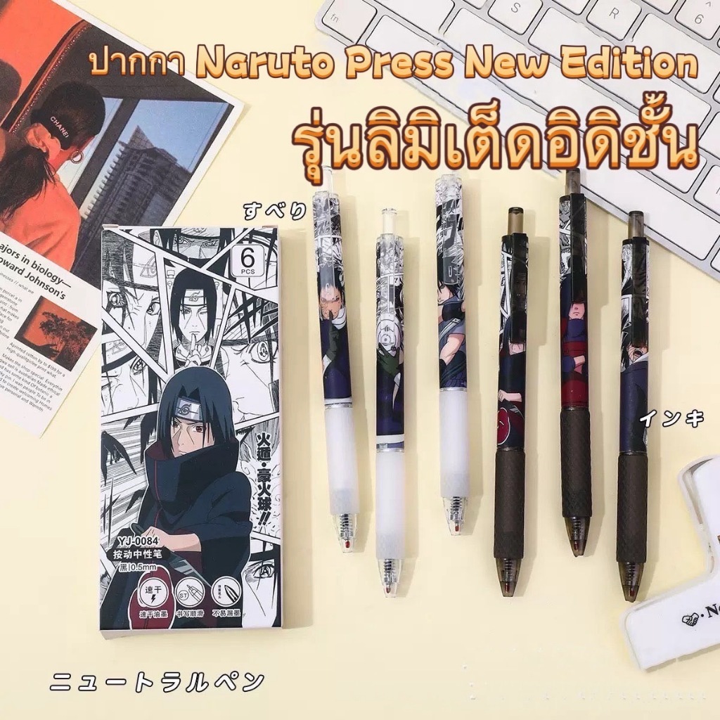 ปากกาเจลลายการ์ตูน ปากกากดลายNARUTO 6สี ปากกาเจลสี 0.38 ปากกาลุกลื่น