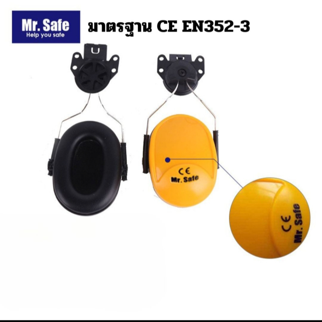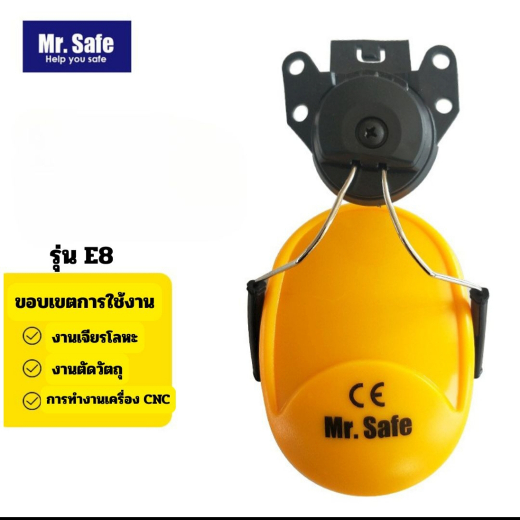 ที่ครอบหูลดเสียงMr.Safe รุ่น E8มาตรฐานCE EN352-3 NRR27db (1 คู่) #แบบต่อกับหมวกเซฟตี้ #สีเหลือง# ใช้งานง่าย น้ำหนักเบาแข