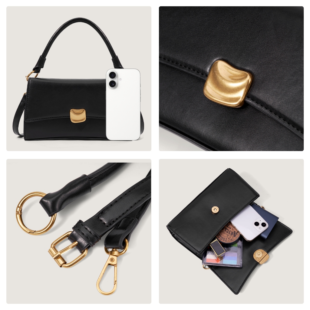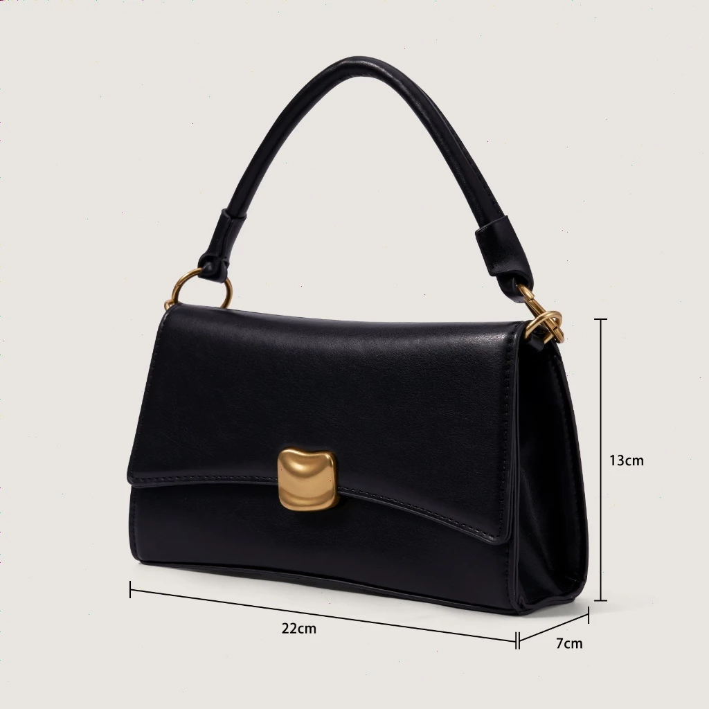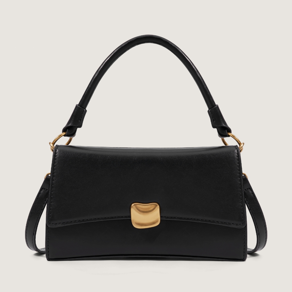 RAINSMORE – กระเป๋าถือสีดำ ดีไซน์ล็อกทองโลหะ ทำจากหนังคุณภาพสูง สไตล์หรูหรา