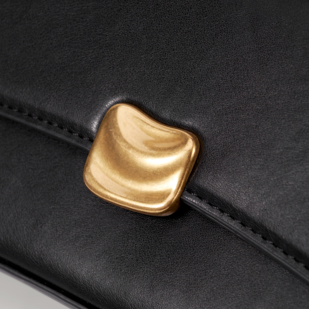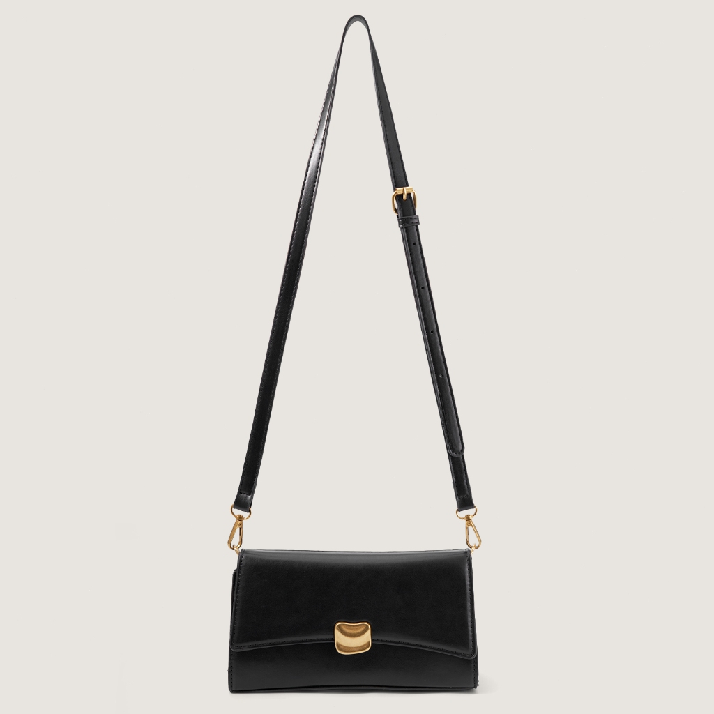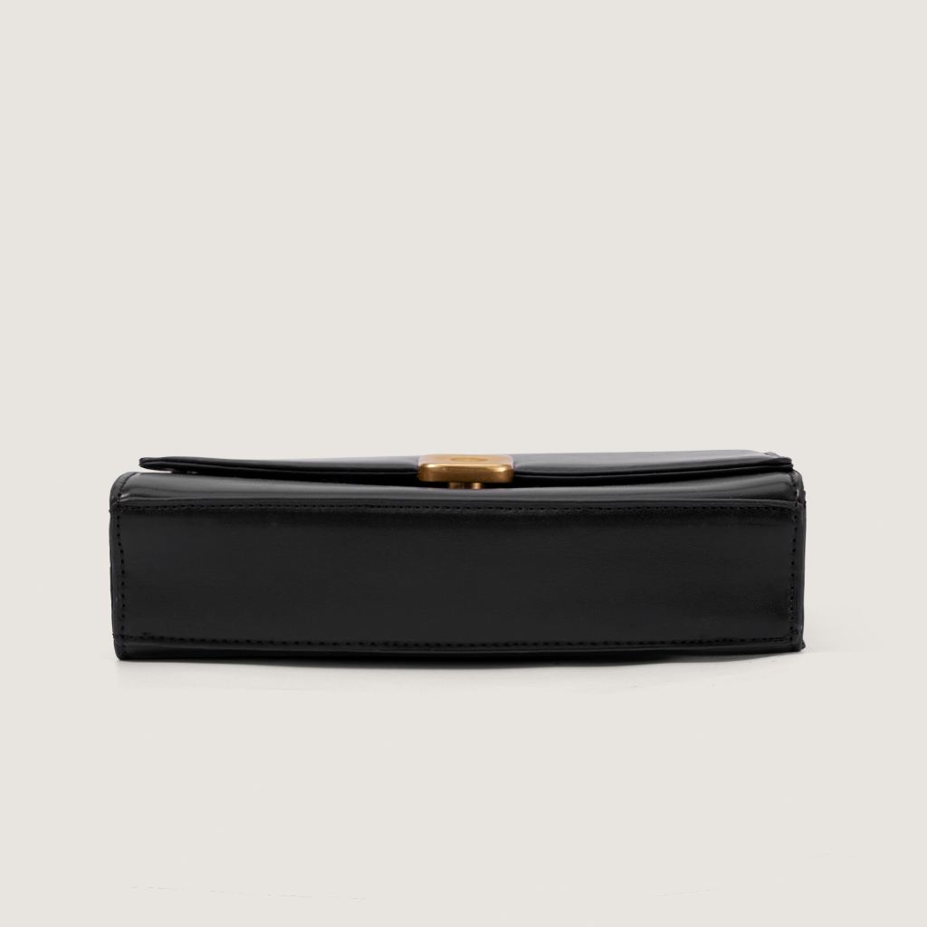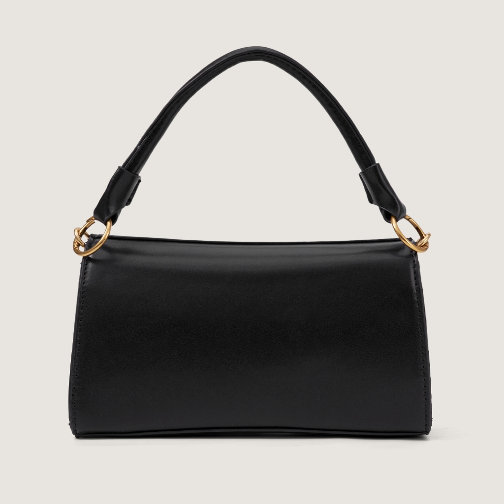 RAINSMORE – กระเป๋าถือสีดำ ดีไซน์ล็อกทองโลหะ ทำจากหนังคุณภาพสูง สไตล์หรูหรา