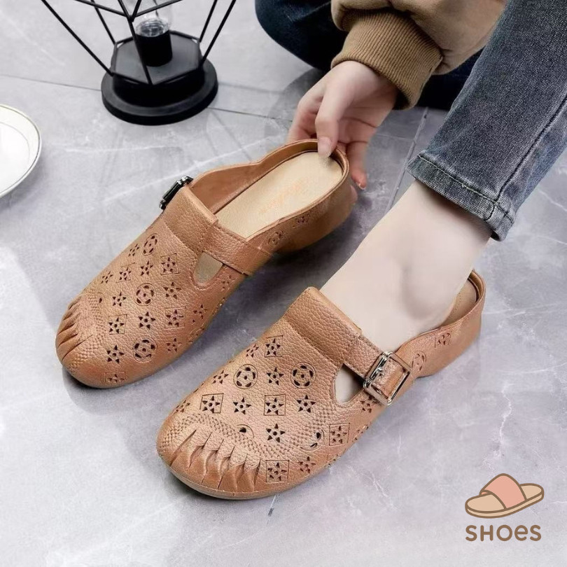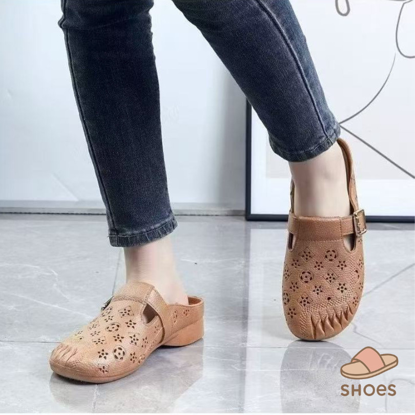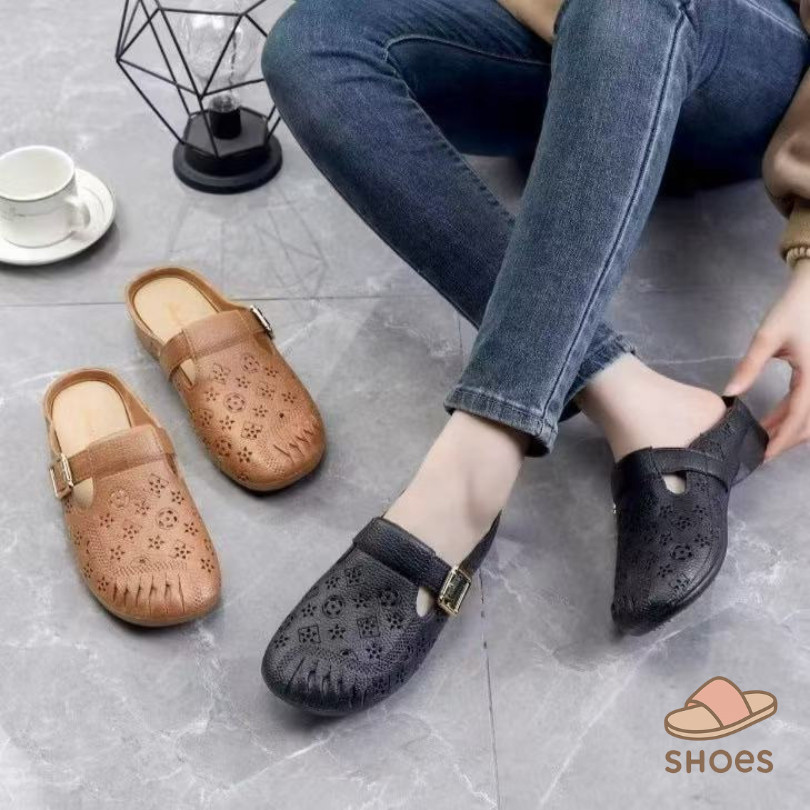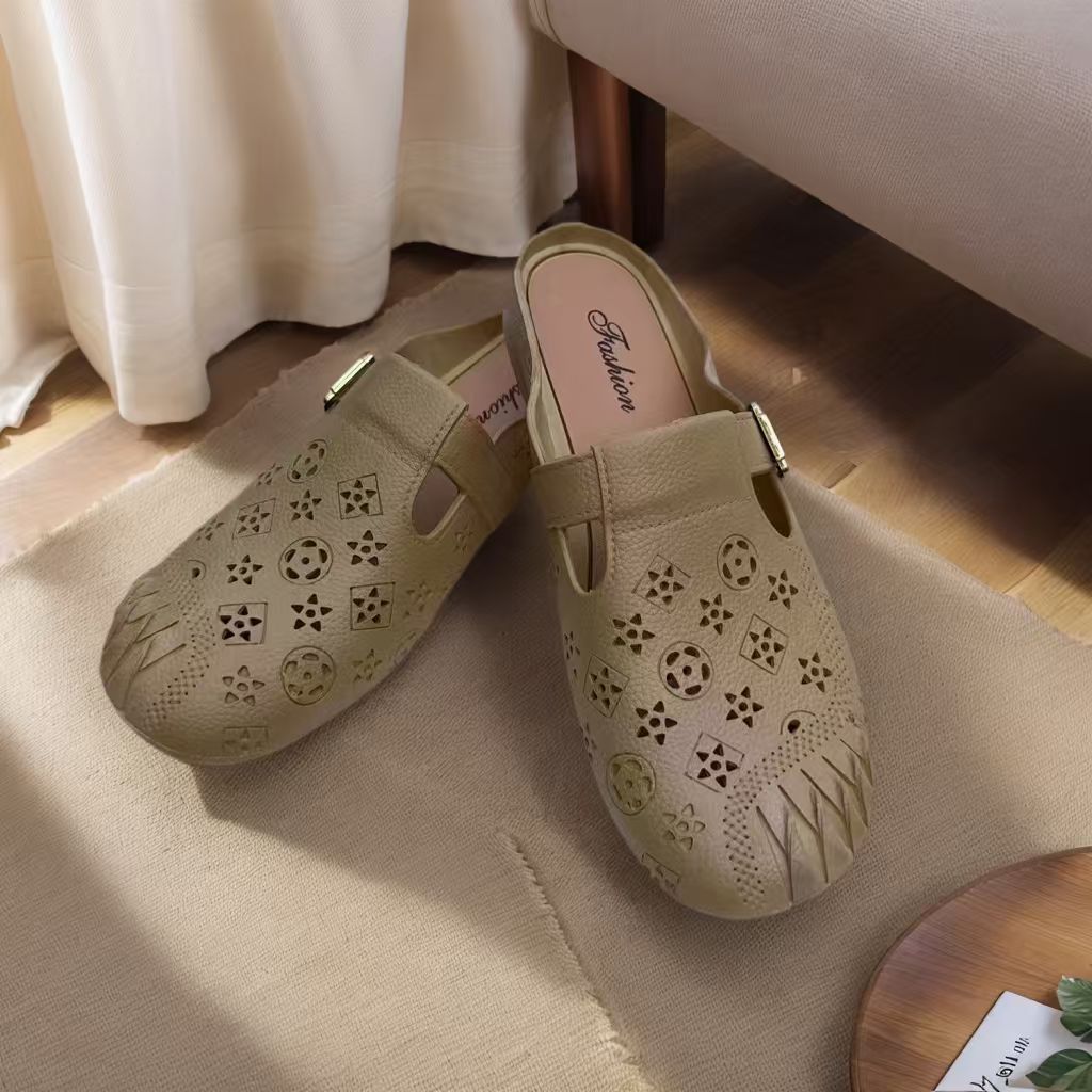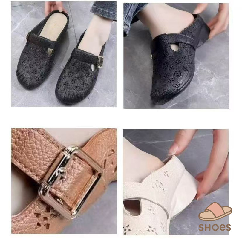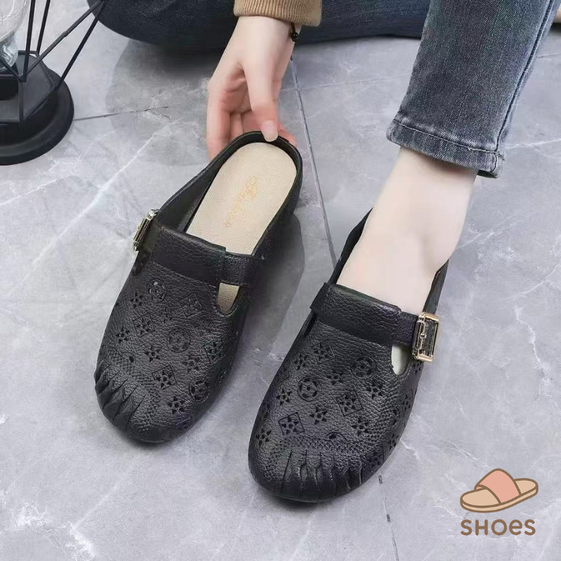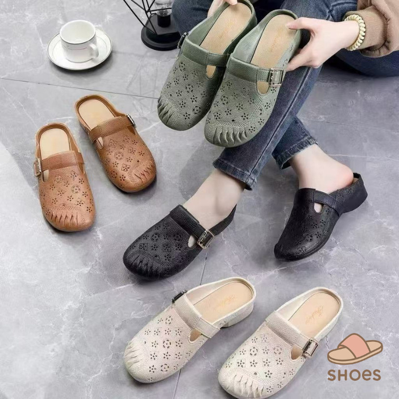 รองเท้าแตะผู้หญิง หัวโต แฟชั่น ส้นแบน พื้นนุ่ม ฤดูร้อน ระบายอากาศ ใส่ไปข้างนอก แบบสวม กันลื่น BB011
