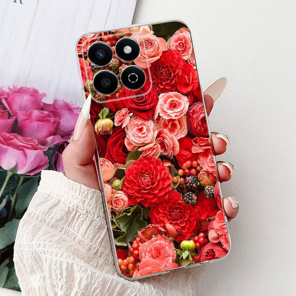 สําหรับ Honor 200 สมาร์ท 5G Elegant Floral Cat เคสโทรศัพท์ Honor 200Smart Soft Silicone TPU Case