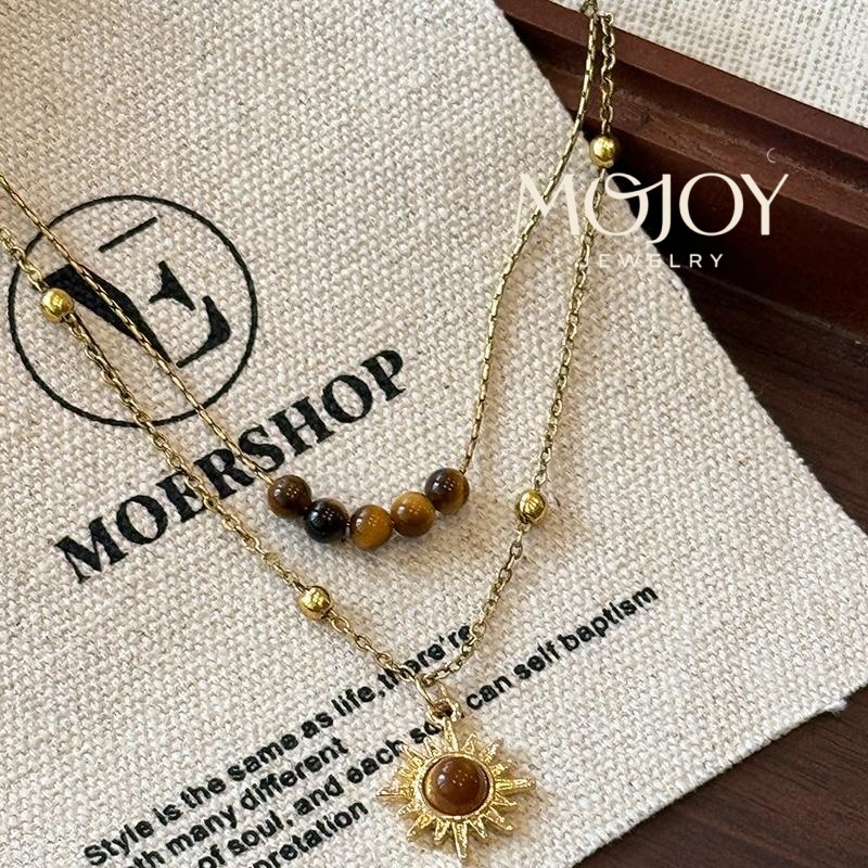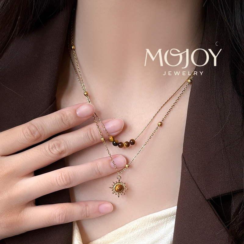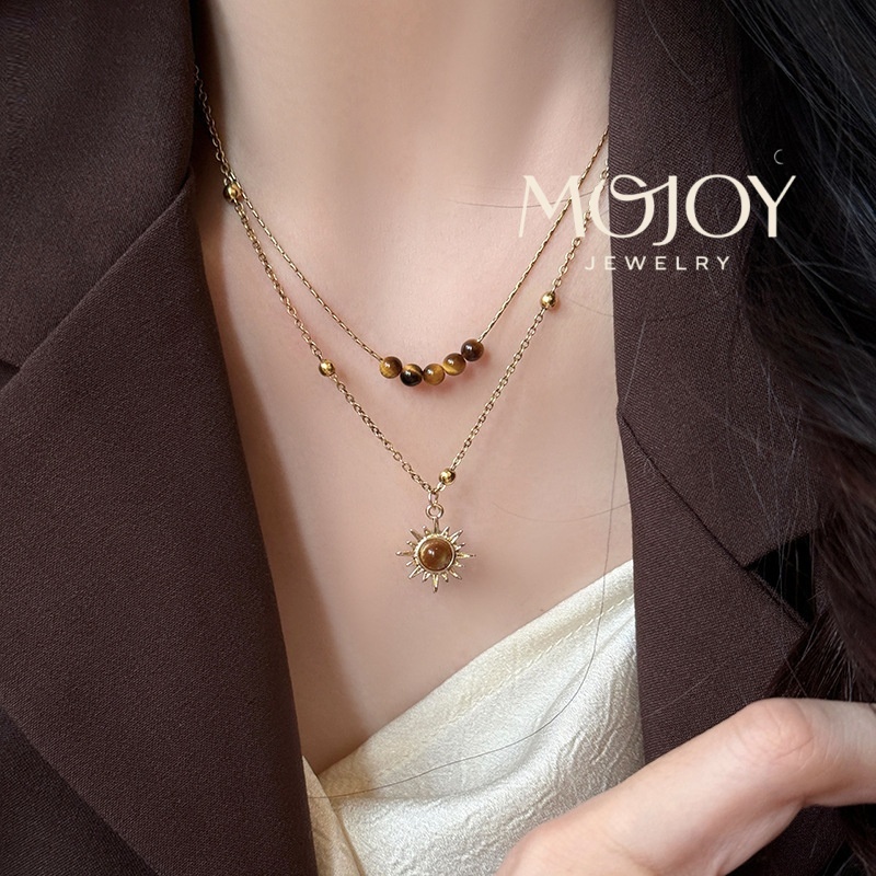 MOJOY สร้อยคอหินตาเสือดอกทานตะวันย้อนยุคโซ่กระดูกไหปลาร้าชั้นสําหรับผู้หญิงวันหยุดเครื่องประดับของขวัญ