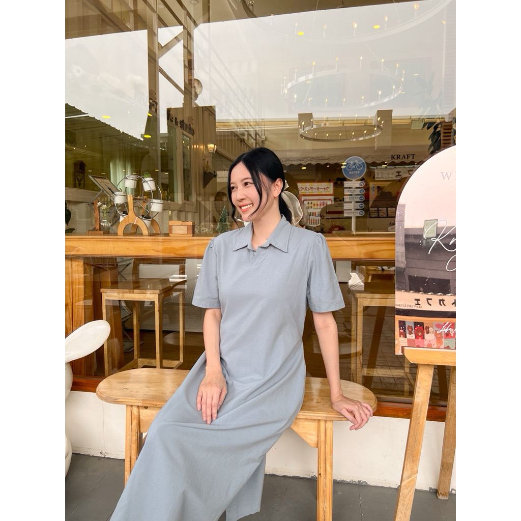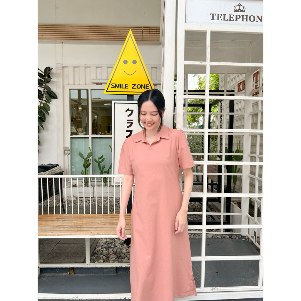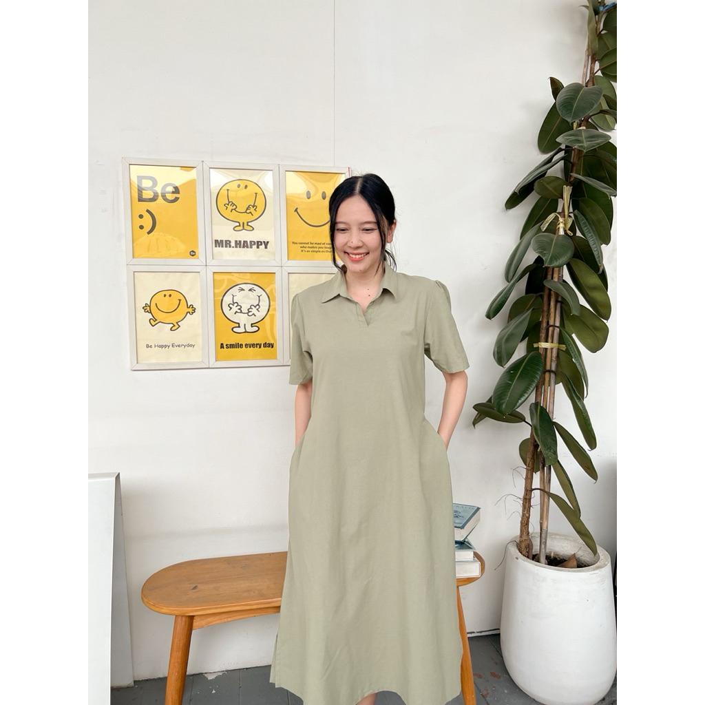 เดรสยาวทรงคอปกผ้าลินินผสมฝ้าย โทนสีละมุนน่ารัก มีกระเป๋าทั้ง2ข้าง มีเชือกผูกปรับขนาดด้านหลัง ผ้าใส่สบายไม่บางค่ะ