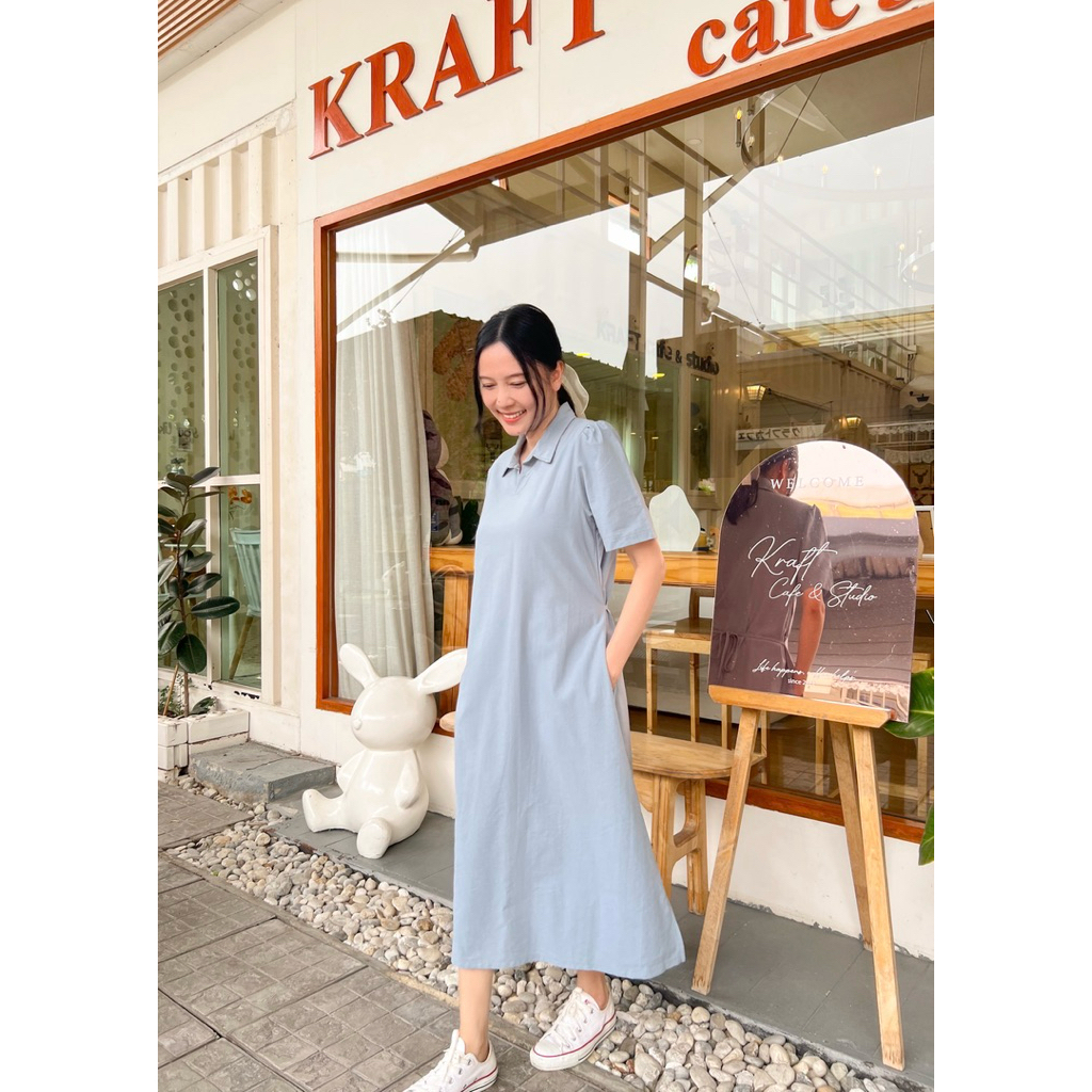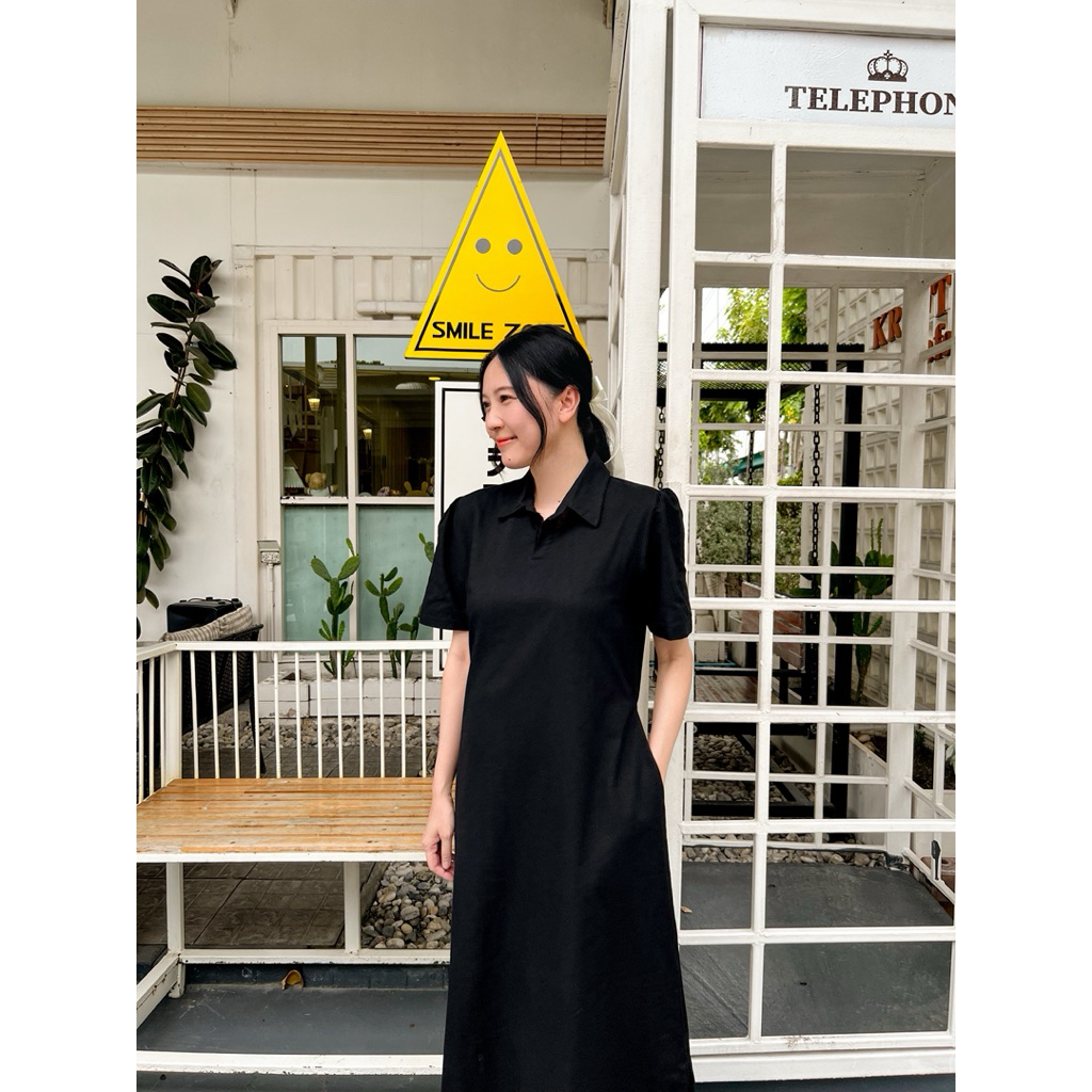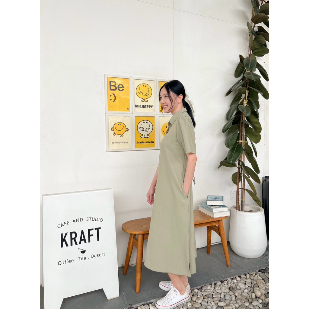 เดรสยาวทรงคอปกผ้าลินินผสมฝ้าย โทนสีละมุนน่ารัก มีกระเป๋าทั้ง2ข้าง มีเชือกผูกปรับขนาดด้านหลัง ผ้าใส่สบายไม่บางค่ะ