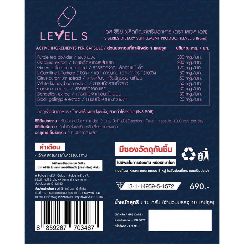 Level S เลเวส เอส ลาล่า ขวัญนภา เอสซีรีย์ เลเวลเอส ของแท้จากบริษัท (1กล่อง10เม็ด) ส่งฟรี